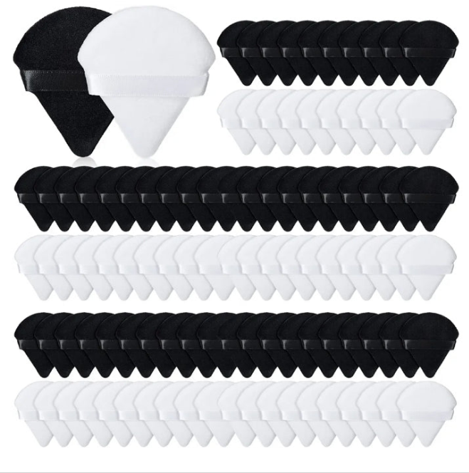 Ample to Use and Share: the package includes 100 pieces of triangle makeup puffs in black and white, 50 pieces for each color, meeting your daily needs of replacement, use and sharing