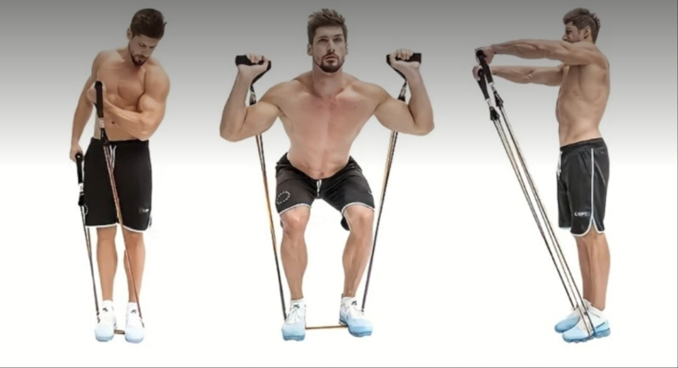 11 piece resistance bands set with door anchor handles ankle straps carry bag.