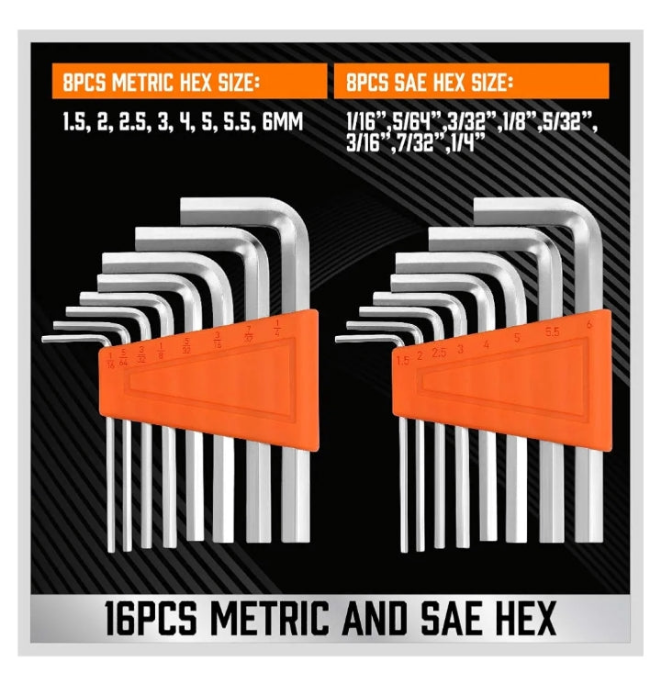 8PCS METRIC HEX SIZE: 1.5, 2, 2.5, 3, 4, 5, 5.5, 6MM
