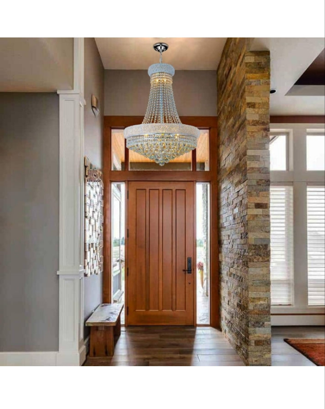 13-Lights Chrome Finish Classic Empire Style K9 Crystal Chandelier Ceiling Light for Living Room Foyer Dining Room Hallway Bedroom (24×31.5 inch) New Packaging Easy to Install