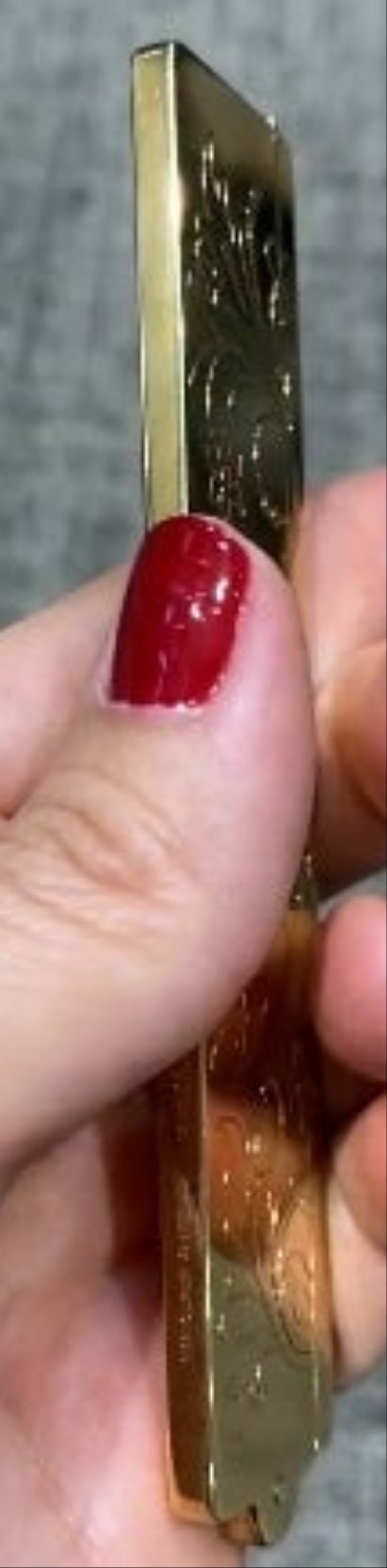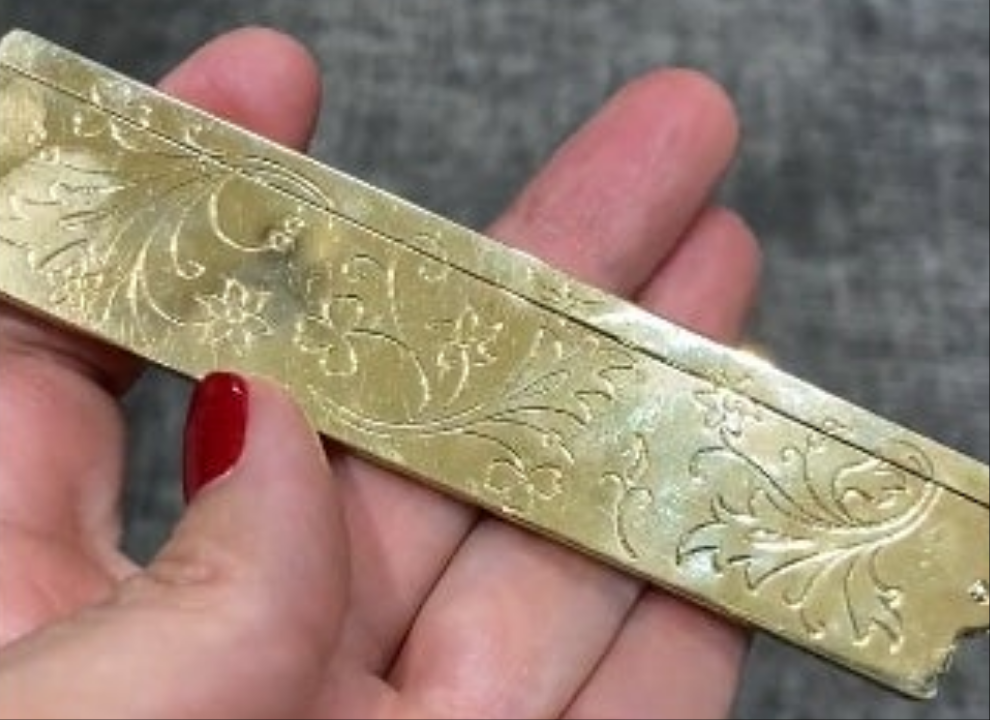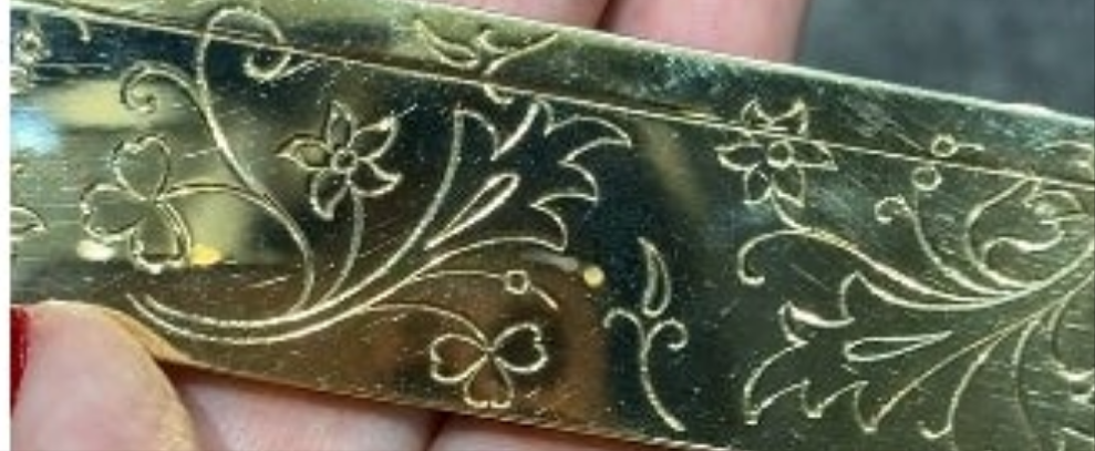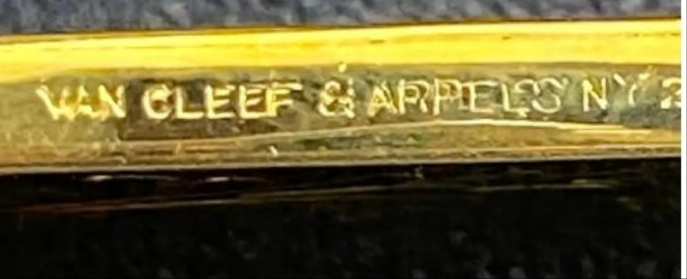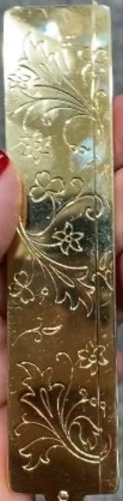 This charming 1940s Van Cleef & Arpels pocket comb is made of 18k yellow gold. It is adorned with a floral design engraving on the front and back and there is a central flower made of a small round cut diamond and round cut sapphires.