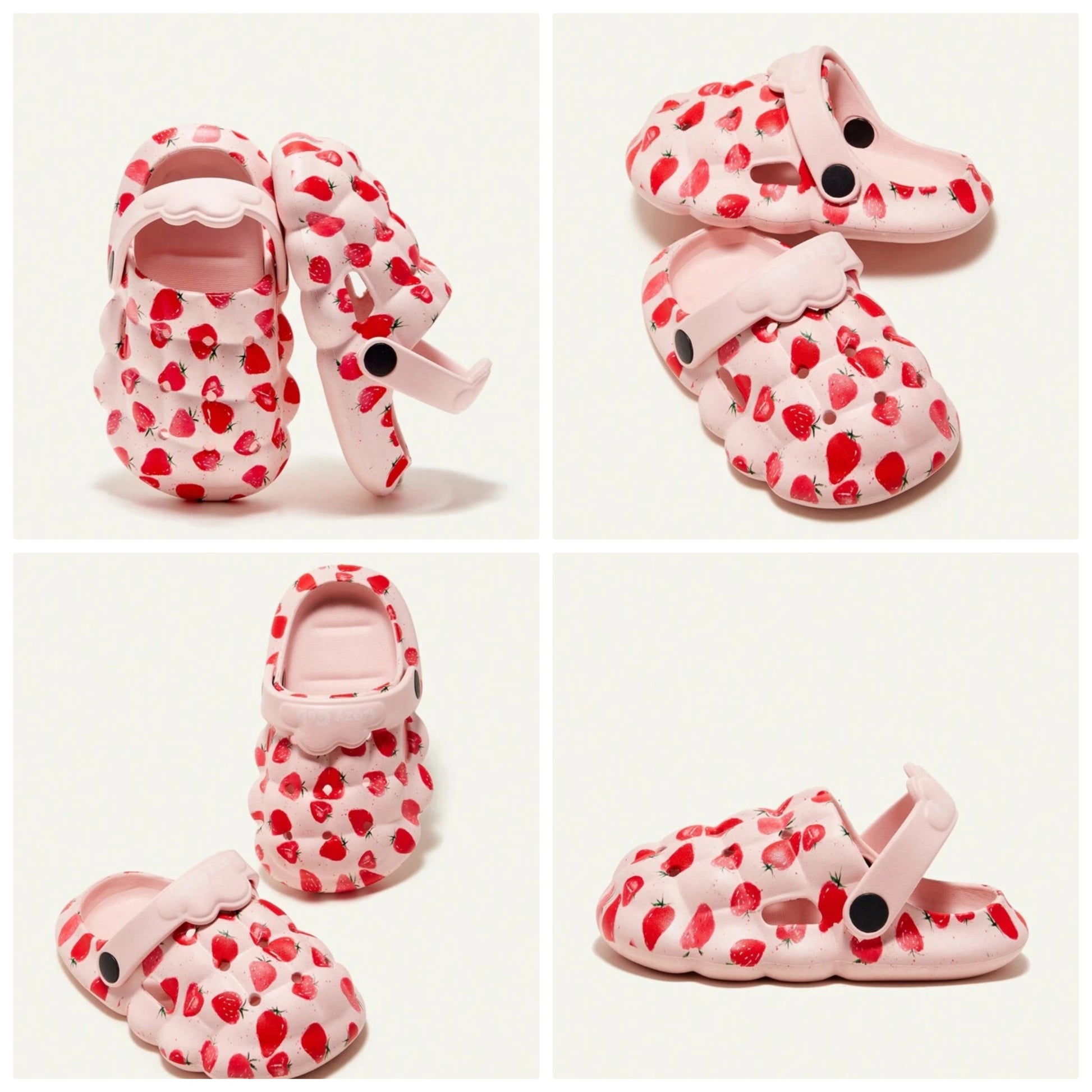 1pair Girls' Fun Cartoon Strawberry Printed Baby Hole Shoes, Cute Slippers, Garden Shoes, Home Shoes, Suitable For Daily Leisure Four Seasons