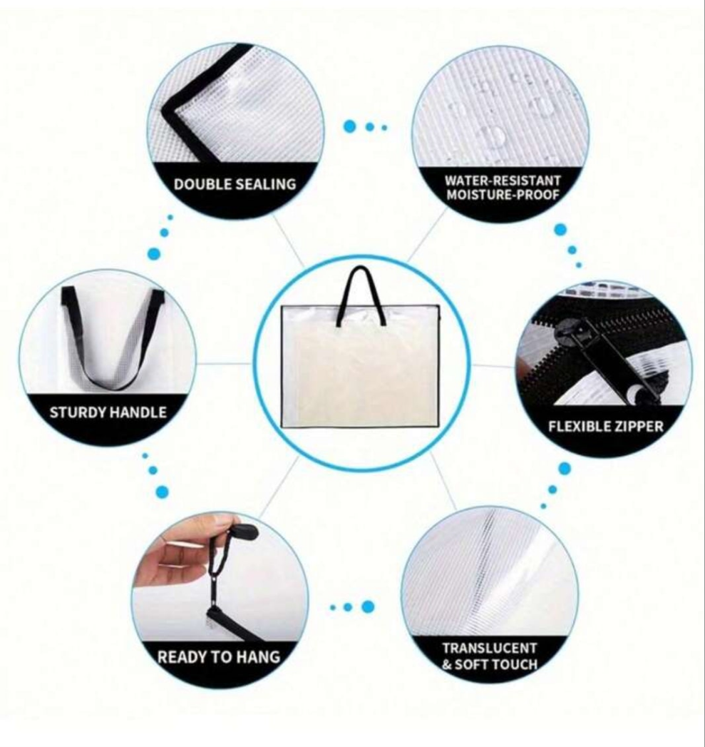 1pc Large Art Portfolio Bag, Poster Diamond Painting Storage Bag, With Zipper Handle, Portable Oil Painting Storage Bag, Mesh Transparent Folder Storage Bag, Used For Bulletin Board Art Charts And Teaching Materials, School Office Supplies Art Craft Suppl