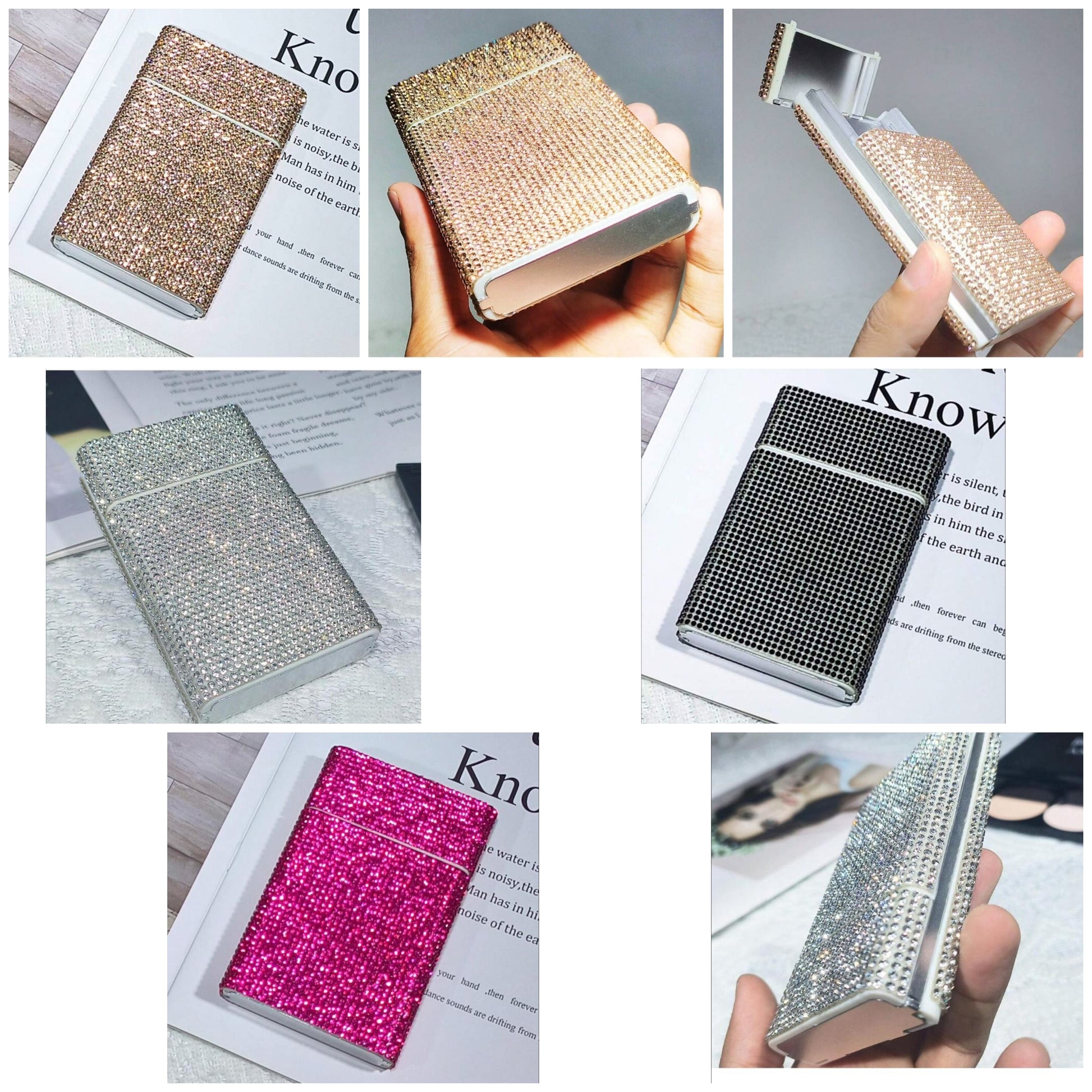 1pc Rhinestone Embellished Women's Cigarette Box, Push-Pull Personality Sparkly Cigarette Case COCOMONEY ABS Rectangle