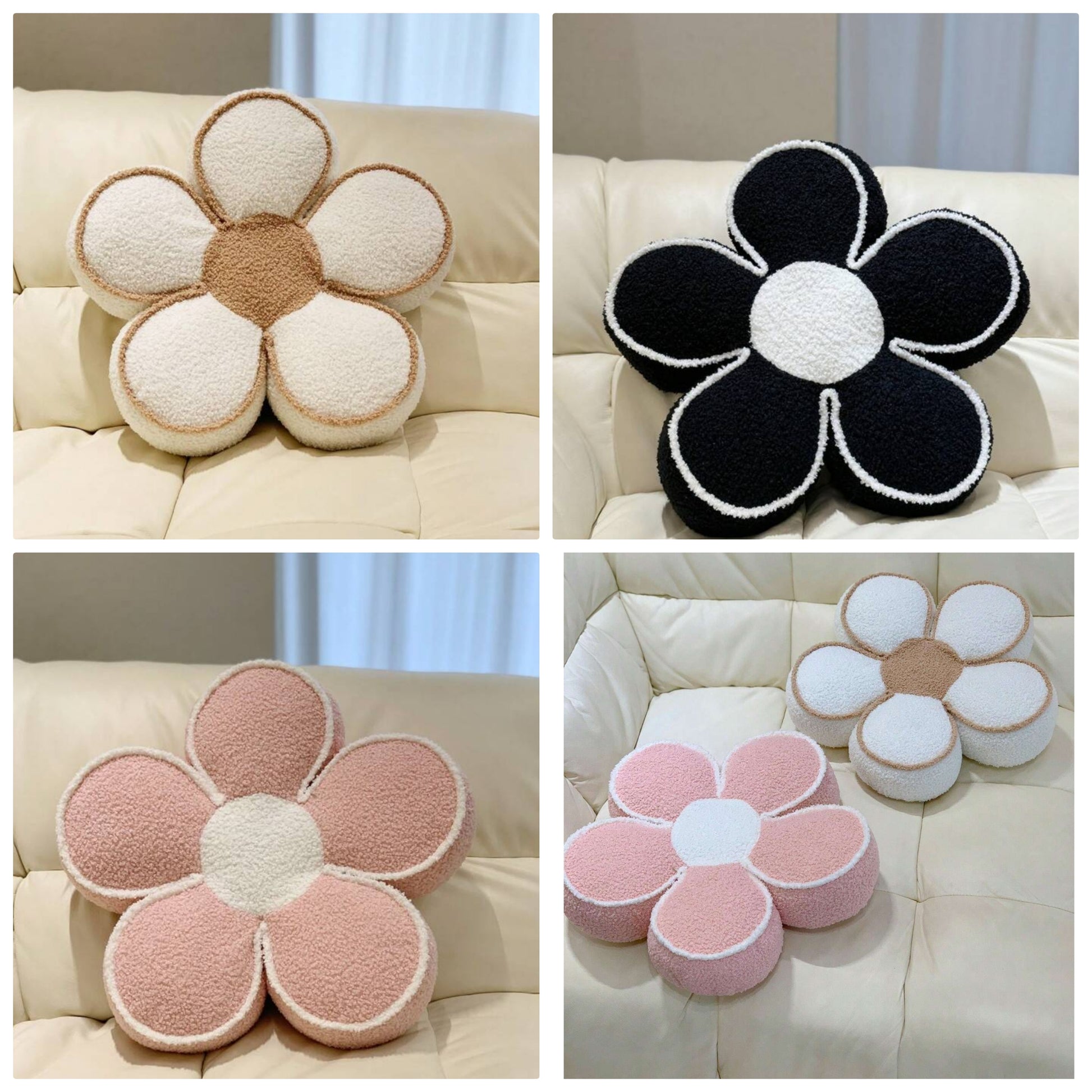 1pc Flower Shaped Plush 3d Flower Embellished Pillow With Filling 16×16inches