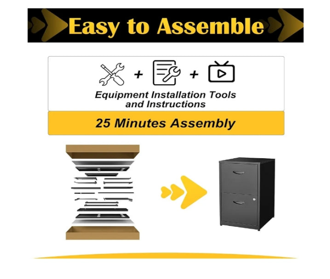 【Assembly Required】The locking filing cabinet require simple assembly, and we provide installation instructions and tools in the package. You only need to perform simple operations to complete the installation