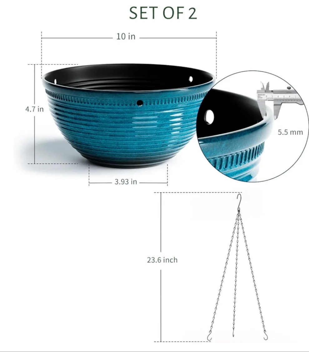 Low Maintenance: Easy-to-clean material with a simple yet creative design that adds charm and practicality to your outdoor space2 Pack Hanging Planters for Indoor Outdoor Plants, 10 Inch Hanging Planter with Drainage Hole & Plug Glazed Hanging Baskets Flower Pots for Garden HomeMaterialPlastic, Iron