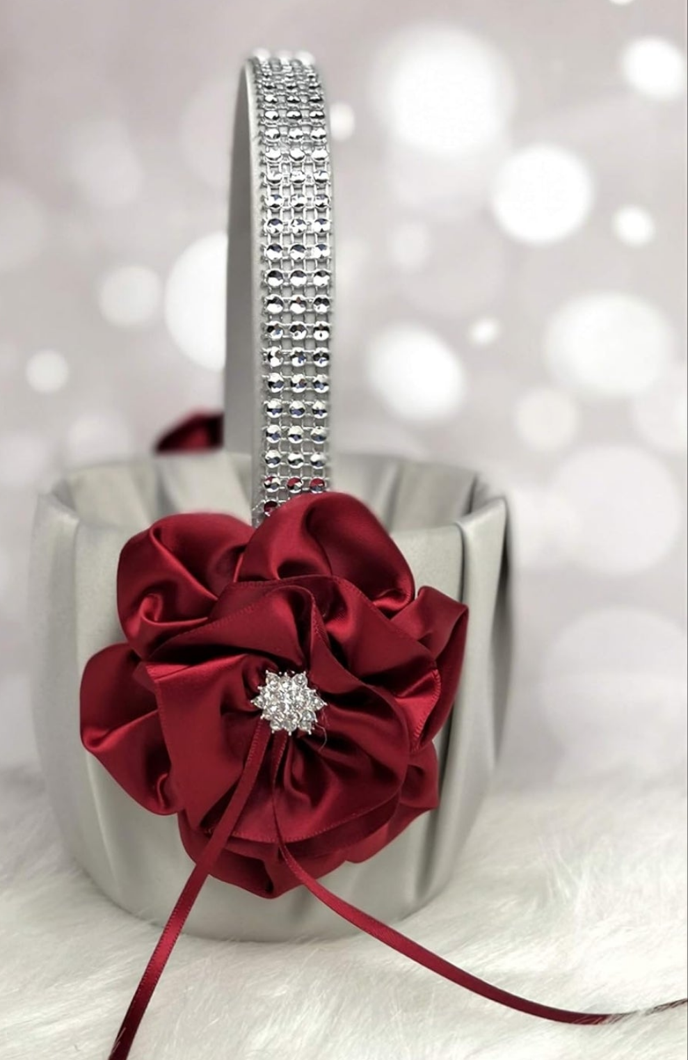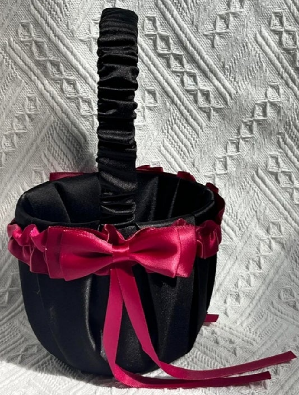 SPECIAL DESIGN - Covered with soft satin fabric and featured a silky purple / deep blue/ivory/red satin ribbon. With suitable size, prefect for young flower girl to carry and great for holding flowers or rose petals