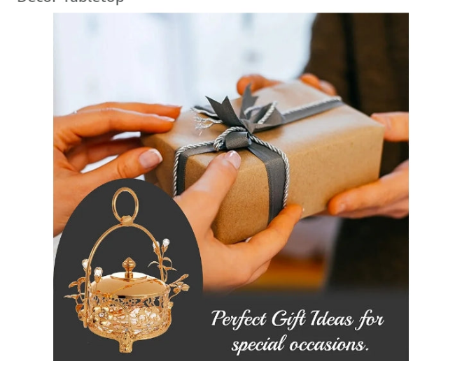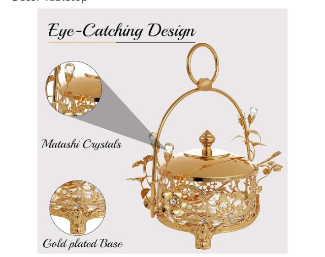 24K Gold Plated Crystal Studded Honey Candy Dish with Rose Accents Great Gifts for Christmas Anniversary Housewarming Present New Year Home Kitchen Dining Decor Tabletop