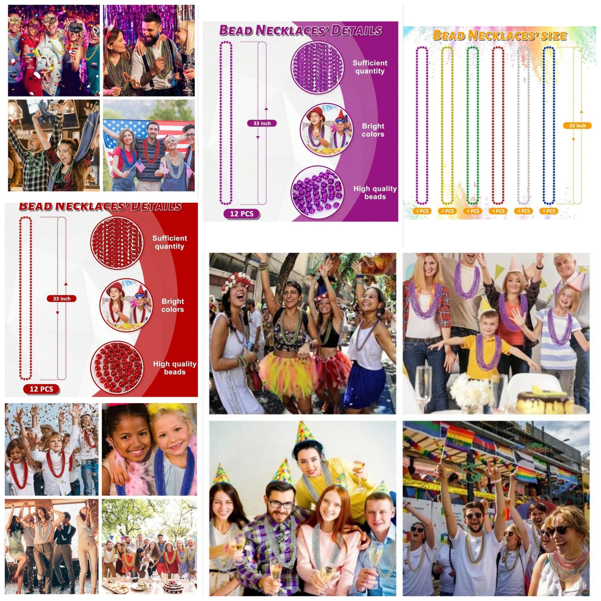 24pcs, Mardi Gras Beaded Necklace, 33 Inch Metal Beaded Necklace, Mardi Gras Party Beads, Suitable For Mardi Gras, Christmas, Valentine's Day, New Year, Masquerade Party Gifts St Patrick's Day Decorations, Irish Day, Easter pp