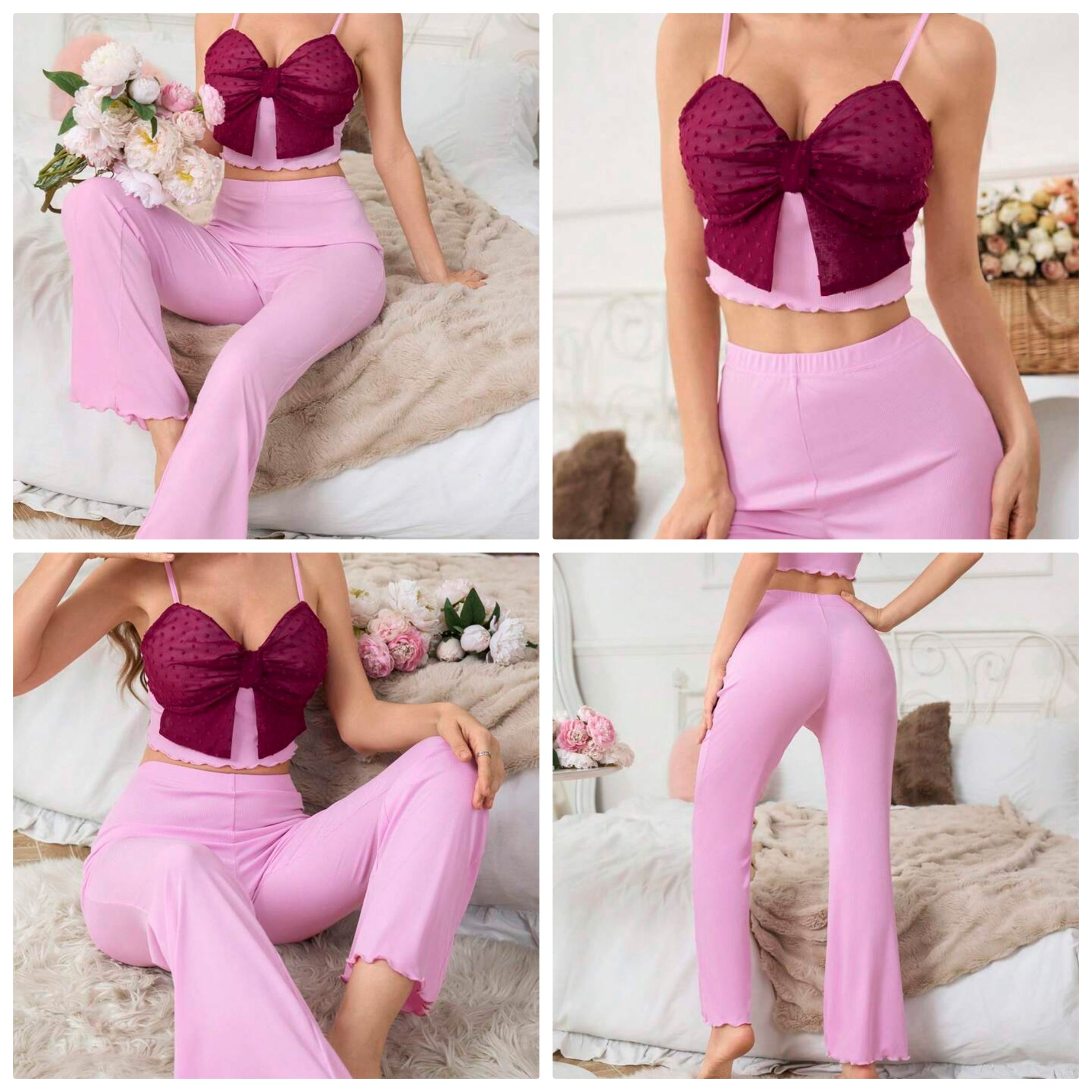 2pcs Women Contrast Color Sleeveless Casual Top And Long Pants Pajama Set
