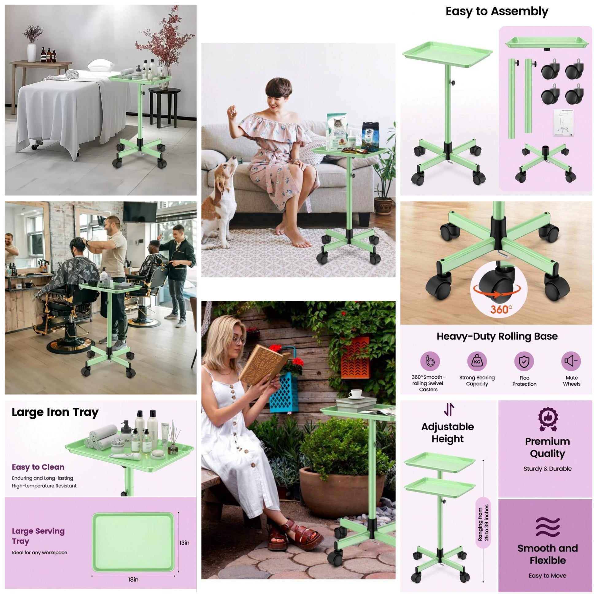 38.5'' H X 17.8'' W Utility Cart With Wheels,Salon Rolling Tray Height Adjustable, Premium Aluminum Salon Tray Used For Tattoo Tray, Salon Tool/Color Tray, Beauty Spa Tray, Dentist Tray