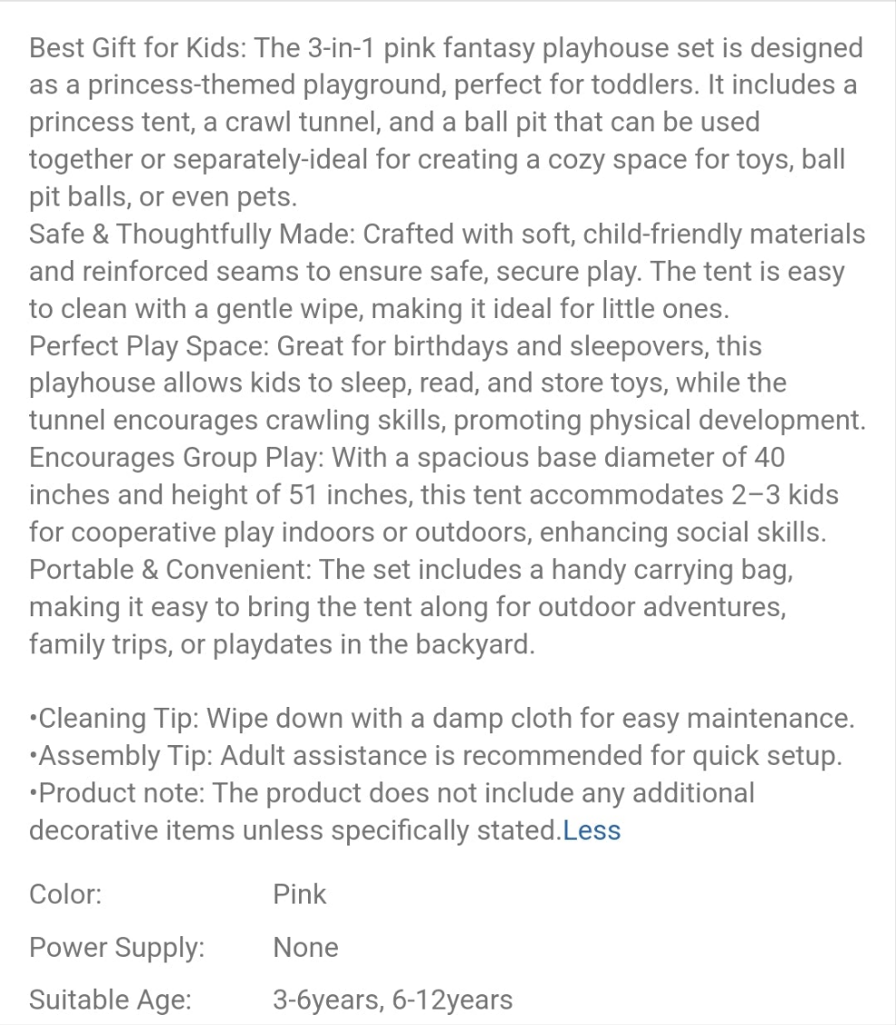 3PC Princess Castle Play Tent Set For Kids – Pink Themed Playhouse With Ball Pit & Crawl Tunnel, Foldable Tent For Toddlers, Perfect Summer Gift For Boys Girls, Ideal For Backyard Fun & Easter Party (Balls Included)120pcs Balls 2.17inch Plastic
