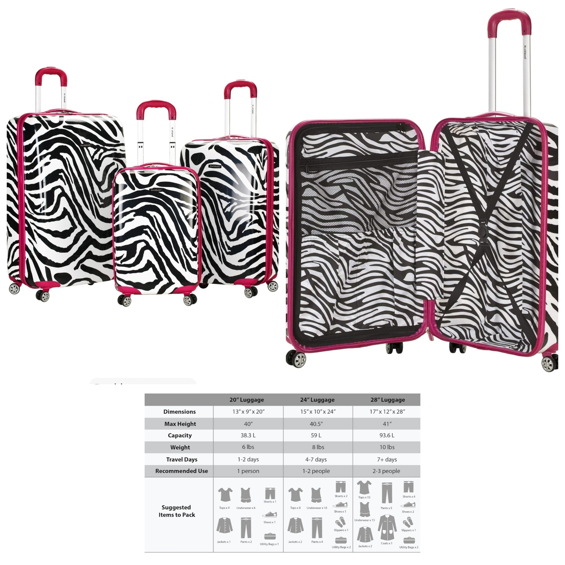 3pcs Safari Hardside Spinner Wheel Luggage, PINKZEBRA, 3-Piece Set (20/24/28)
