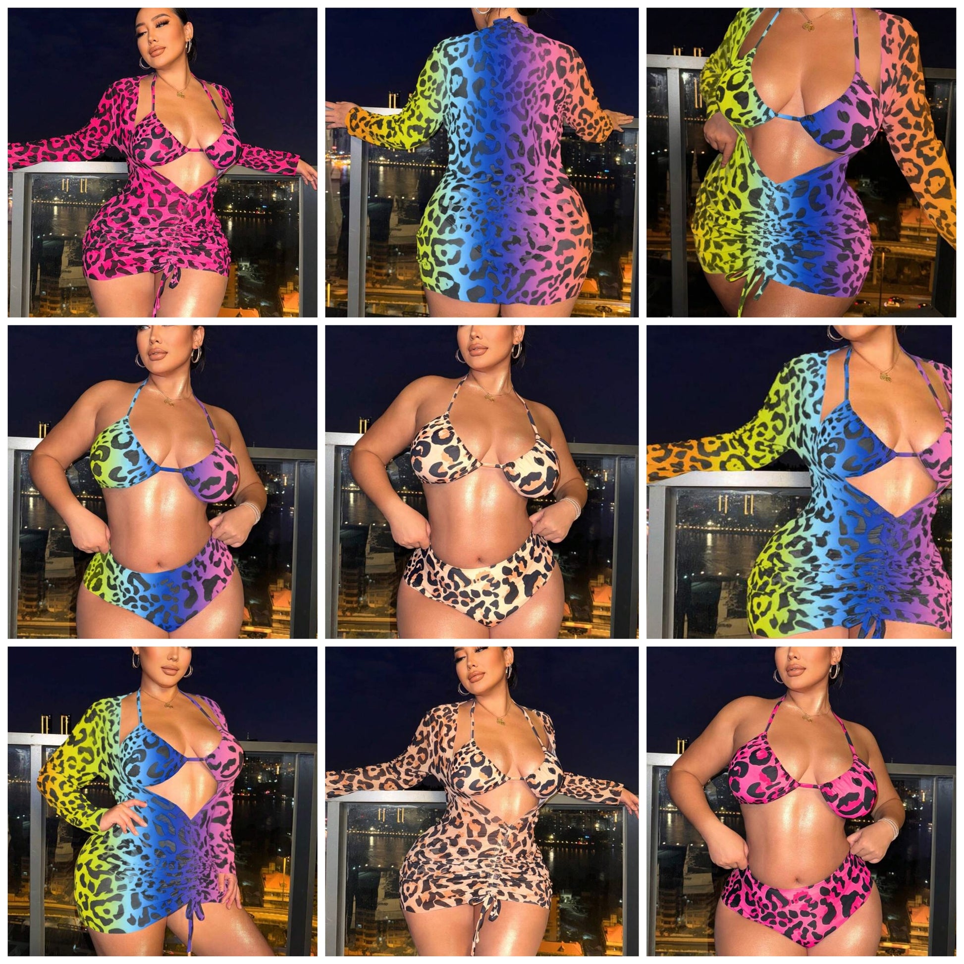 3pcs/Set Plus Size Summer Beach Leopard Print Bikini Set COCOMONEY