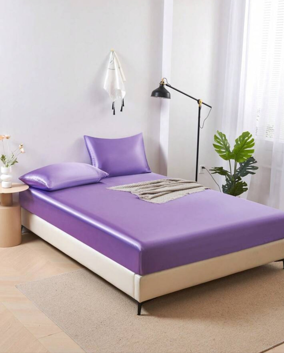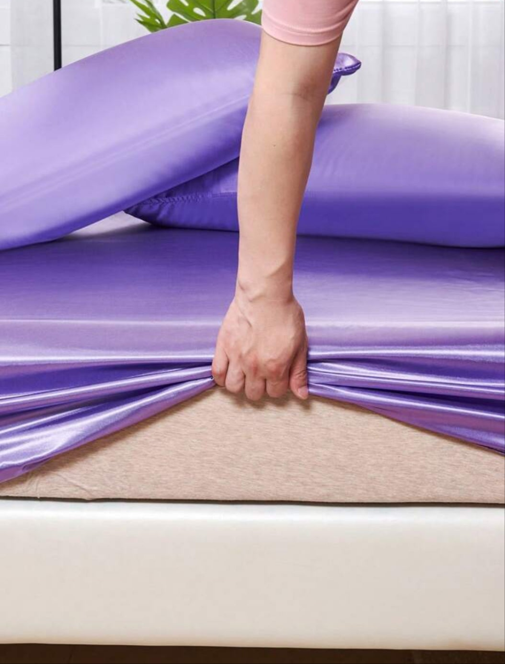 3pcs Solid Color Satin Fitted Sheet Set Simulation Silk Fitted Sheet Set With 1pc Fitted Sheet+2pcs Pillow Case Without Filler, Modern Soft Bedding Set For Household 1 set