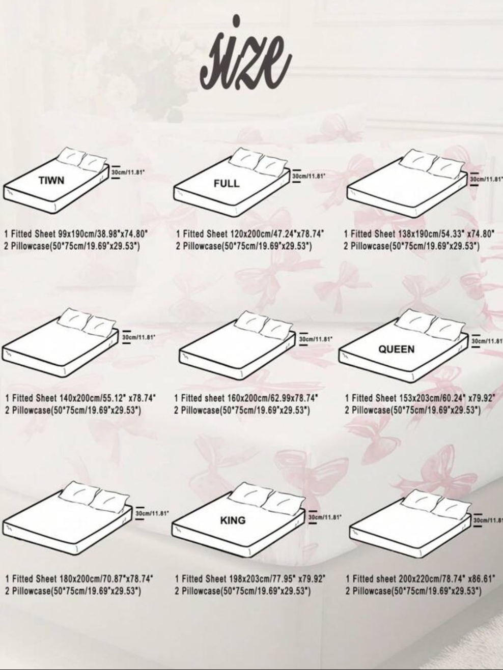3pcs Watercolor Pink Bow Girly Cute Digital Print Bedding Set (1 Bedsheet + 2 Pillowcases, No Comforter), Daily Use Polyester Fiber Soft & Skin-Friendly, Suitable For Master/Guest/Kids Bedroom, All Seasons