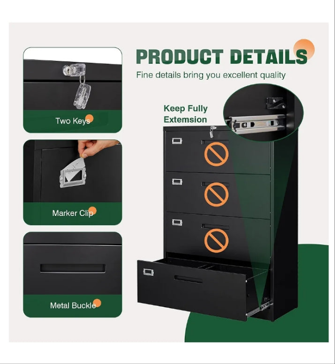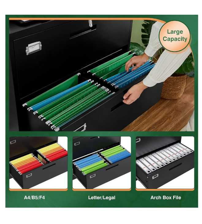 〖Document Storage Security〗One key to lock all drawers,each drawer can hang A4/F4/Letter/Legal and other file types;Each drawer can hang at least 150-300 files,drawer dimensions: 32.5"WX15"DX9.8"H.