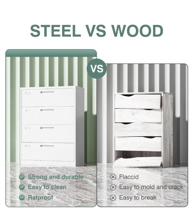 〖Durable Metal Material〗File cabinet is made of 0.8mm thick steel,whole is solid and does not deform, and it is stronger than wooden filing cabinets in terms of firmness, durability, moisture resistance, and fire protection.