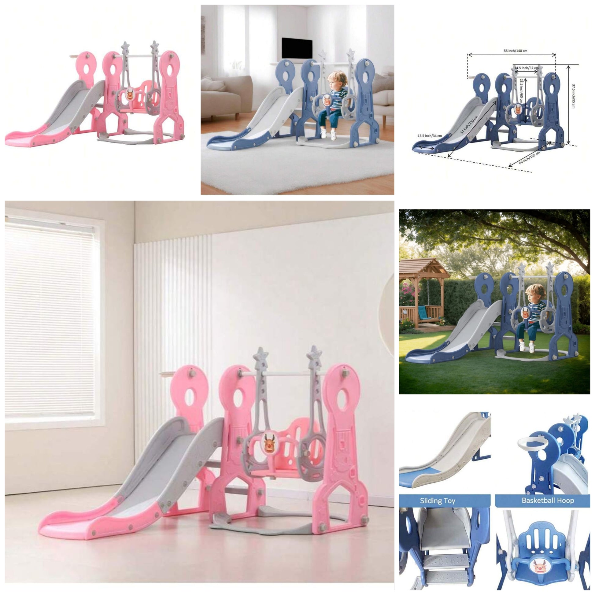 4 In 1 Kids Swing And Slide ,Indoor Outdoor Playground For Children Baby Swing Set With Slide, Basketball Hoop For Boys And Girls