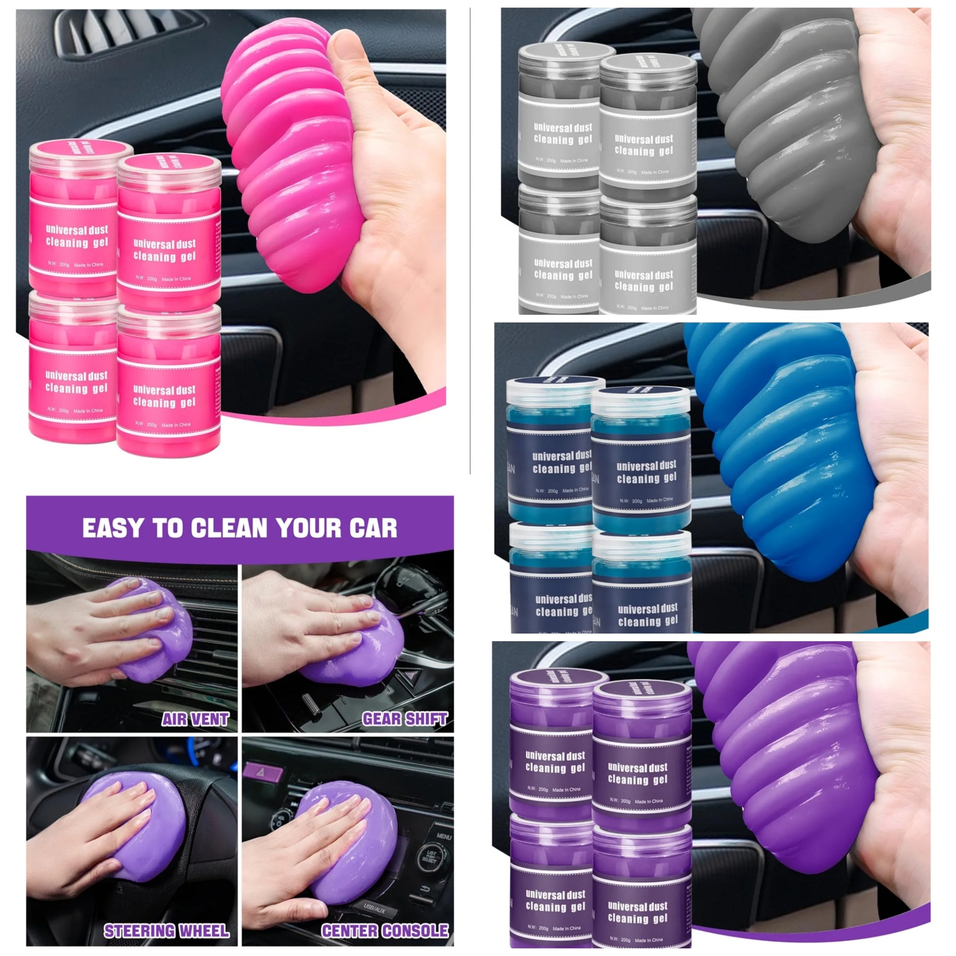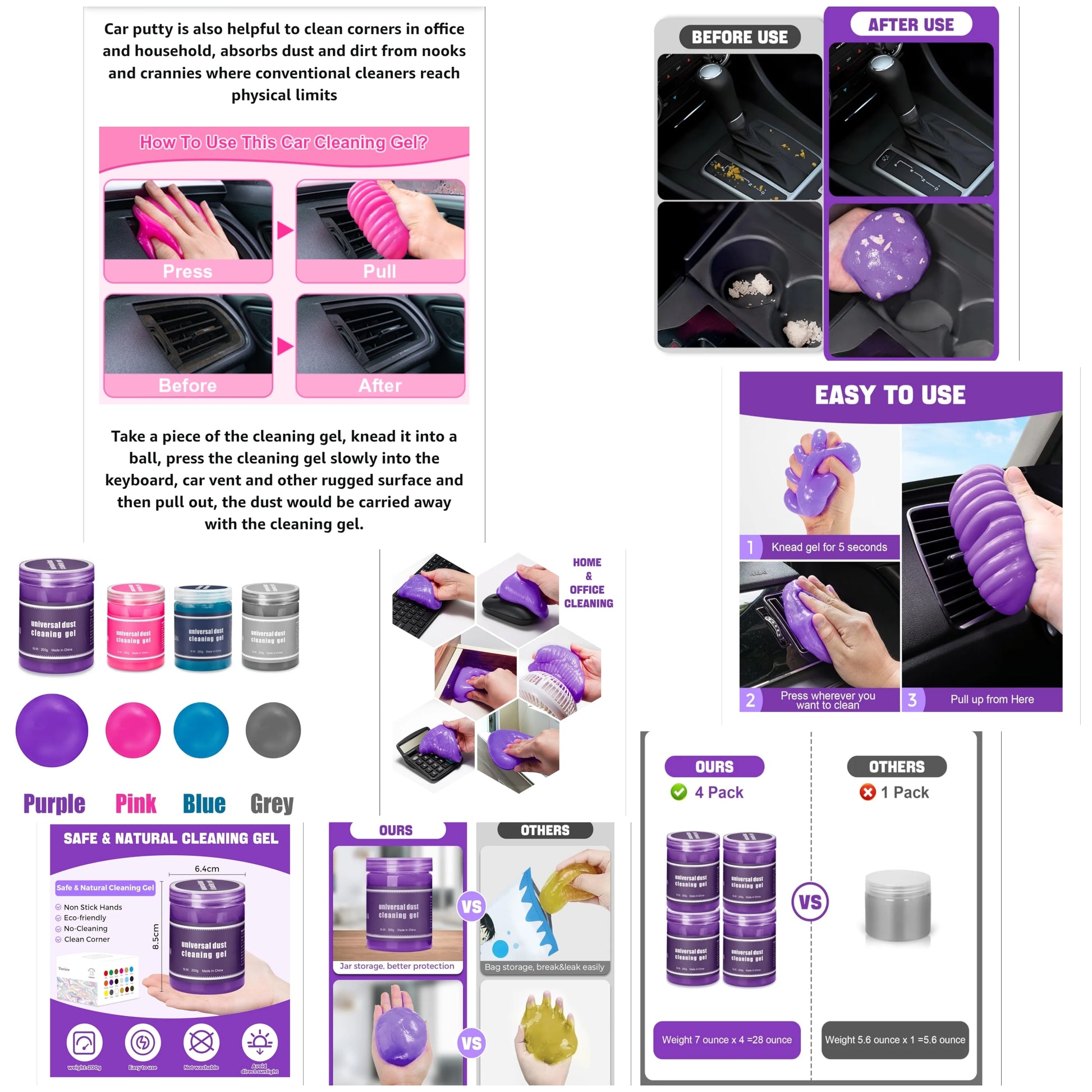 4 Pack Car Cleaning Gel, Purple Car Cleaning Putty, Universal Auto Detailing Tools Car Slime Dust Cleaning Gel for Car Interior, Air Vent, Dashboard, Keyboard 28 OZ.......... Model gel