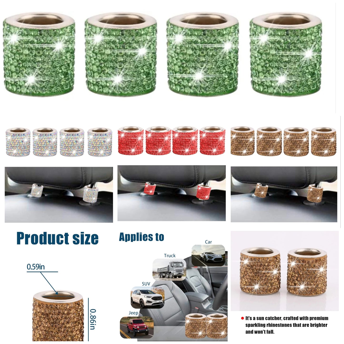 【SIZE】: 1.26" outer diameter, 0.55" inner diameter, 0.91" height. The right size fits most vehicles. Please make sure it is the right size for your car before ordering. Tips: It is only suitable for vehicles with removable headrests. They will do the job to make your car look nice. If you are a girly girl who likes bling things you will not be disappointed!