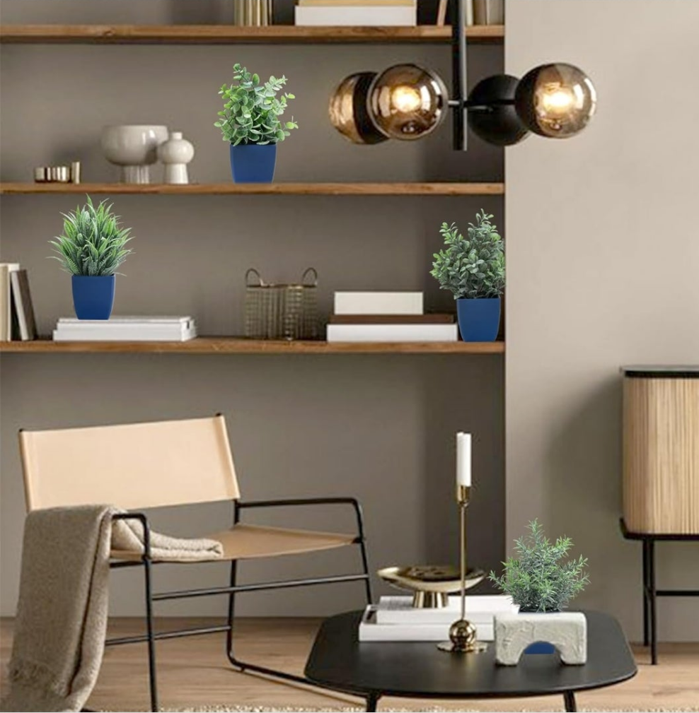 🌸【Quantity & Size】 You will receive 4 pack different fake plants.Each plant's average height is 7.5" ,width is 2.6".