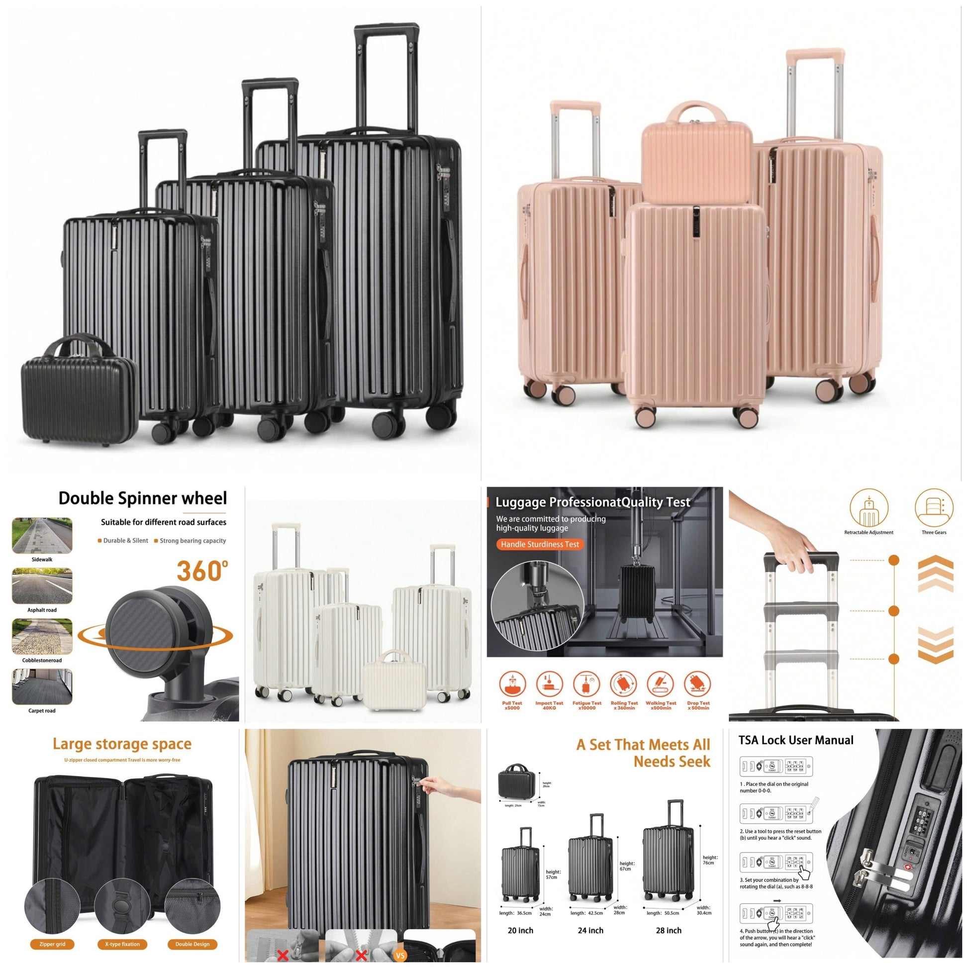 4-Piece Luggage Sets With 360 Spinner Wheels ABS+PC Hard Shell Luggage Suitcase Sets With TSA Lock Cosmetic Bag 14in 20in 24in 28in Travel Suitcase Suitcases Suit Case Durable Carry On Travel Luggage Carry On Suitcase Hand Luggage Waterproof