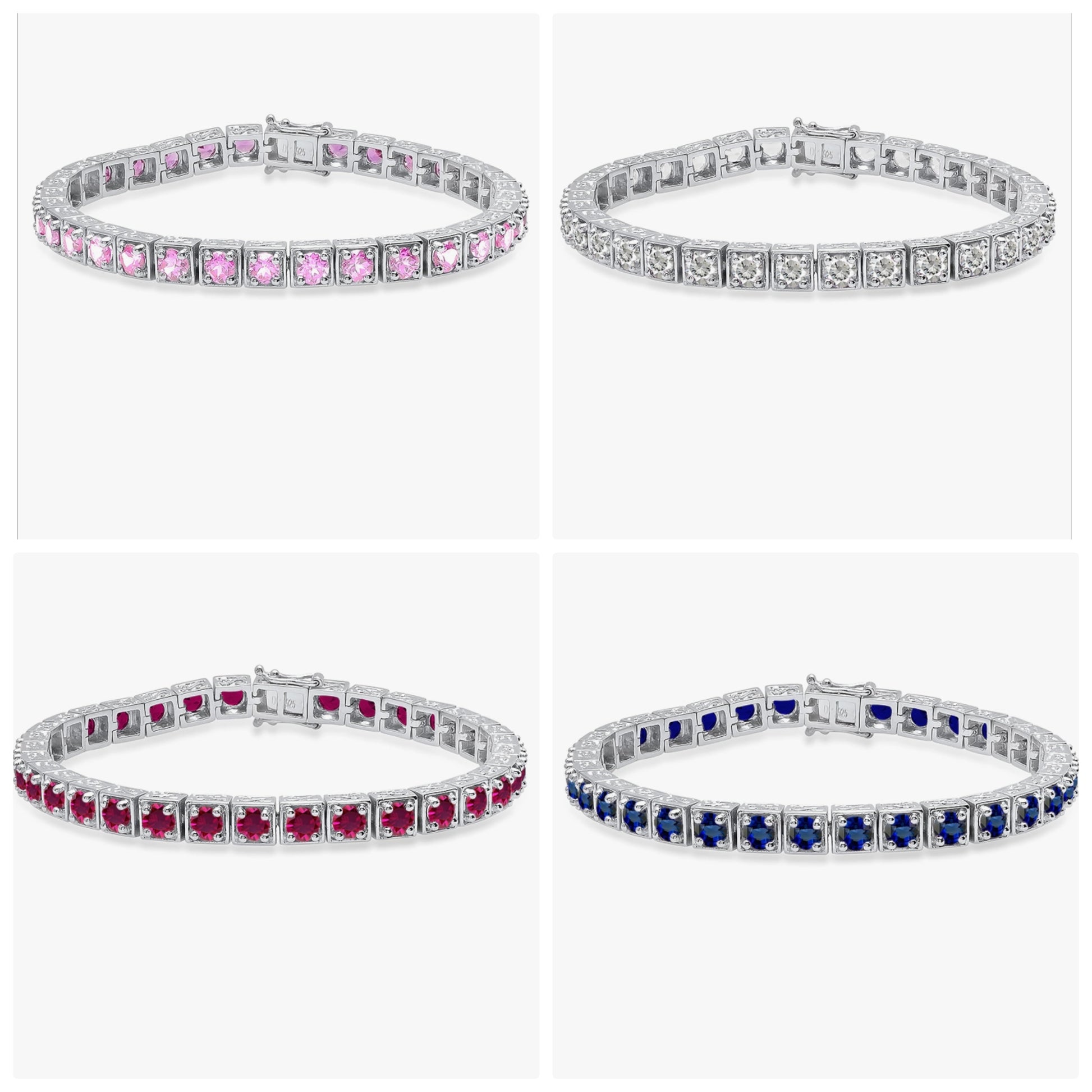 4mm Each Round Lab Created Gemstone Square Framed Tennis Bracelet for Women in 925 Sterling Silver