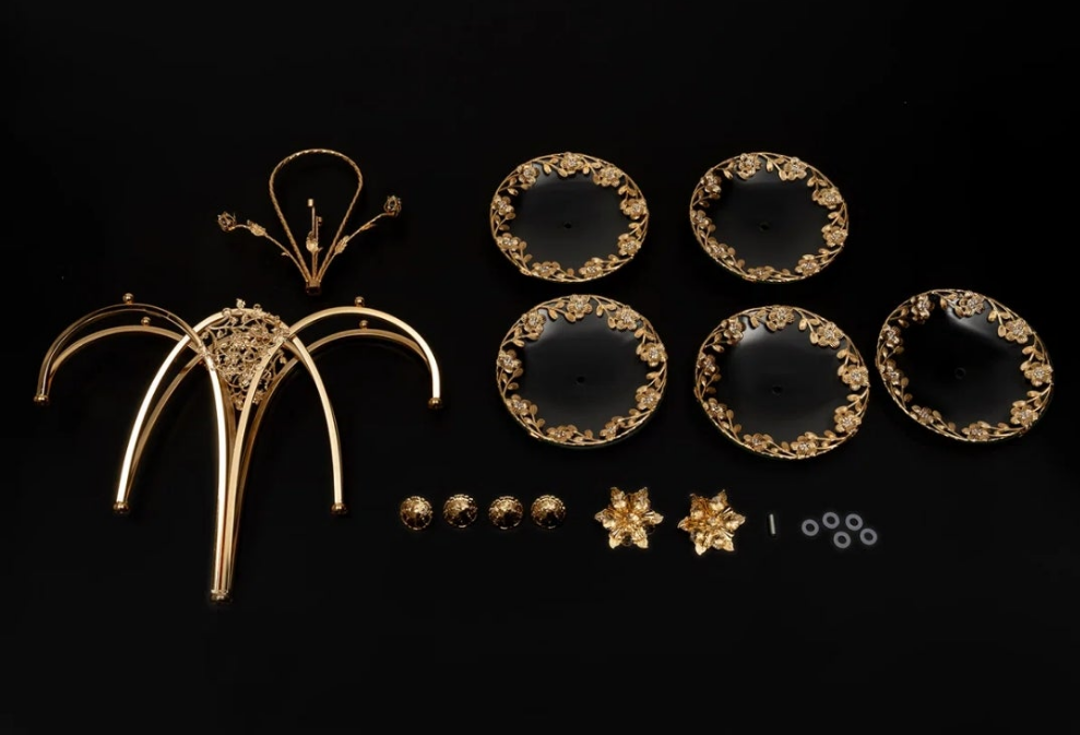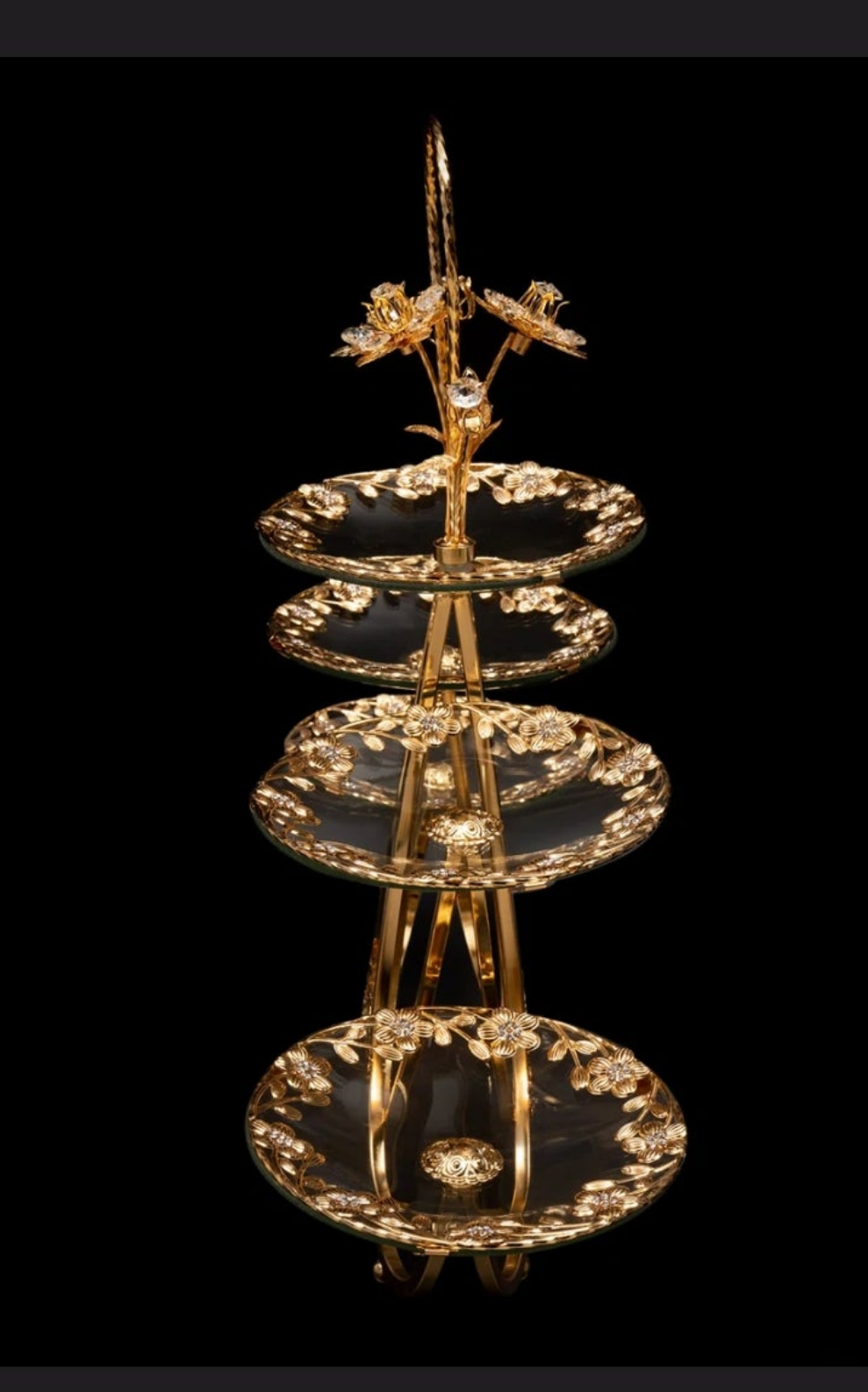 Material: Iron, Tempering Glass. Color: Clear, Gold. Number of Plates: 5.