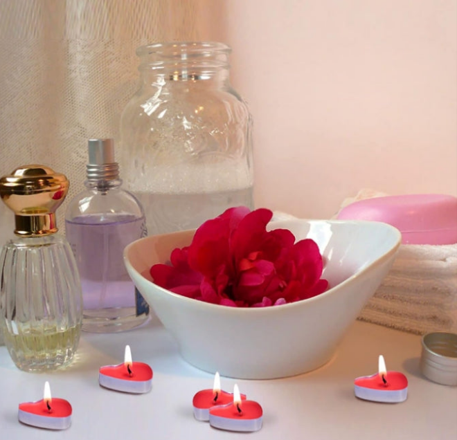 50 Pack Heart Shaped Unscented Tea Lights Candles – Smokeless Tealight Candles - Decorations for Wedding, Party, Votives,