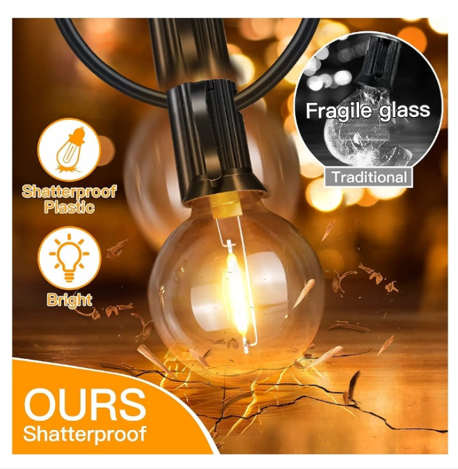 50FT Outdoor String Lights, Waterproof Connectable Shatterproof Outside Light with 25 Edison + 2 Spare LED Bulbs Plug in, Patio Lights for Indoor Balcony PorchItem Weight 17.96 g