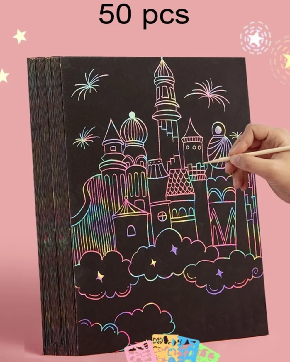 50pcs Scratch Paper & 5pcs Bamboo Stick Back To School