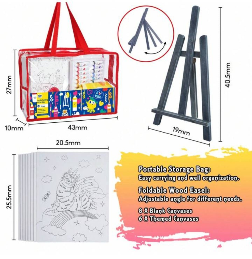 52 Pcs Paint Set With 24 Colors Acrylic Paint, Wood Easel, 8" X 10" Canvases, Brushes, Storage Bag, Great Gift For Christmas New Year