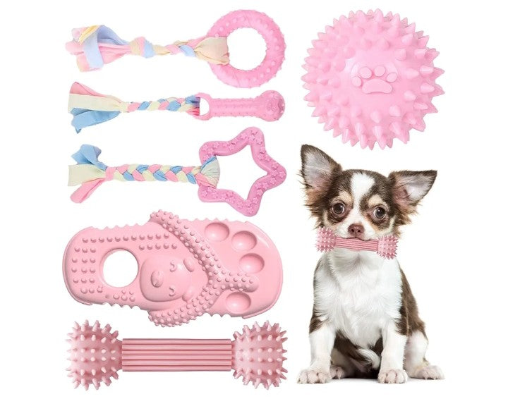 6 Pack Dog Toys for Small Dog Pink Soft Rubber Puppy Toys for Teething Funny Slippers Ball Donut Interactive Set for Small Dog Teething Toys Pet Puppy Toys Set