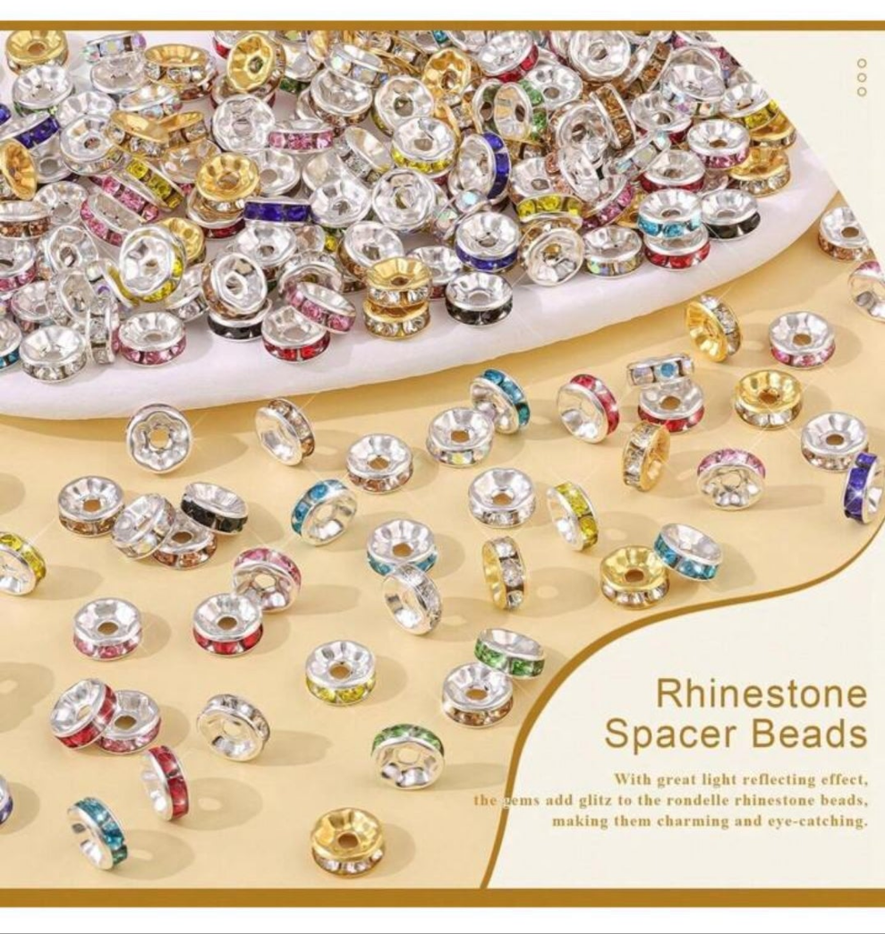 600pcs 8mm Spacer Beads For Crafting Rondelle Spacer Beads With Box Fancy Sparkle Crystal Rhinestone Spacer Loose Beads For Necklace Bracelet Earring Jewelry Making And Pens DIY multicolor
