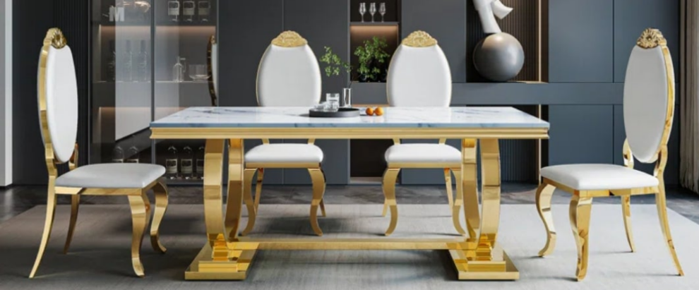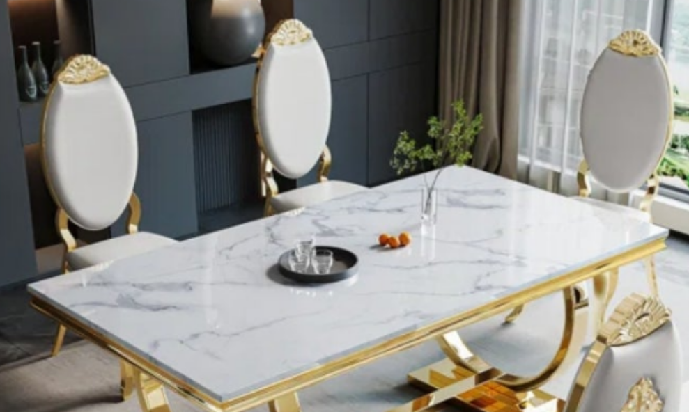 Comfortable and Supportive Chairs – Featuring ergonomic, high-back design and soft PU leather upholstery, the six chairs ensure comfort and style, supported by strong stainless steel legs for long-term use.Versatile Use – This dining set for six is ideal for daily meals, gatherings, and even commercial spaces, blending modern sophistication with practicality for both home and business use.