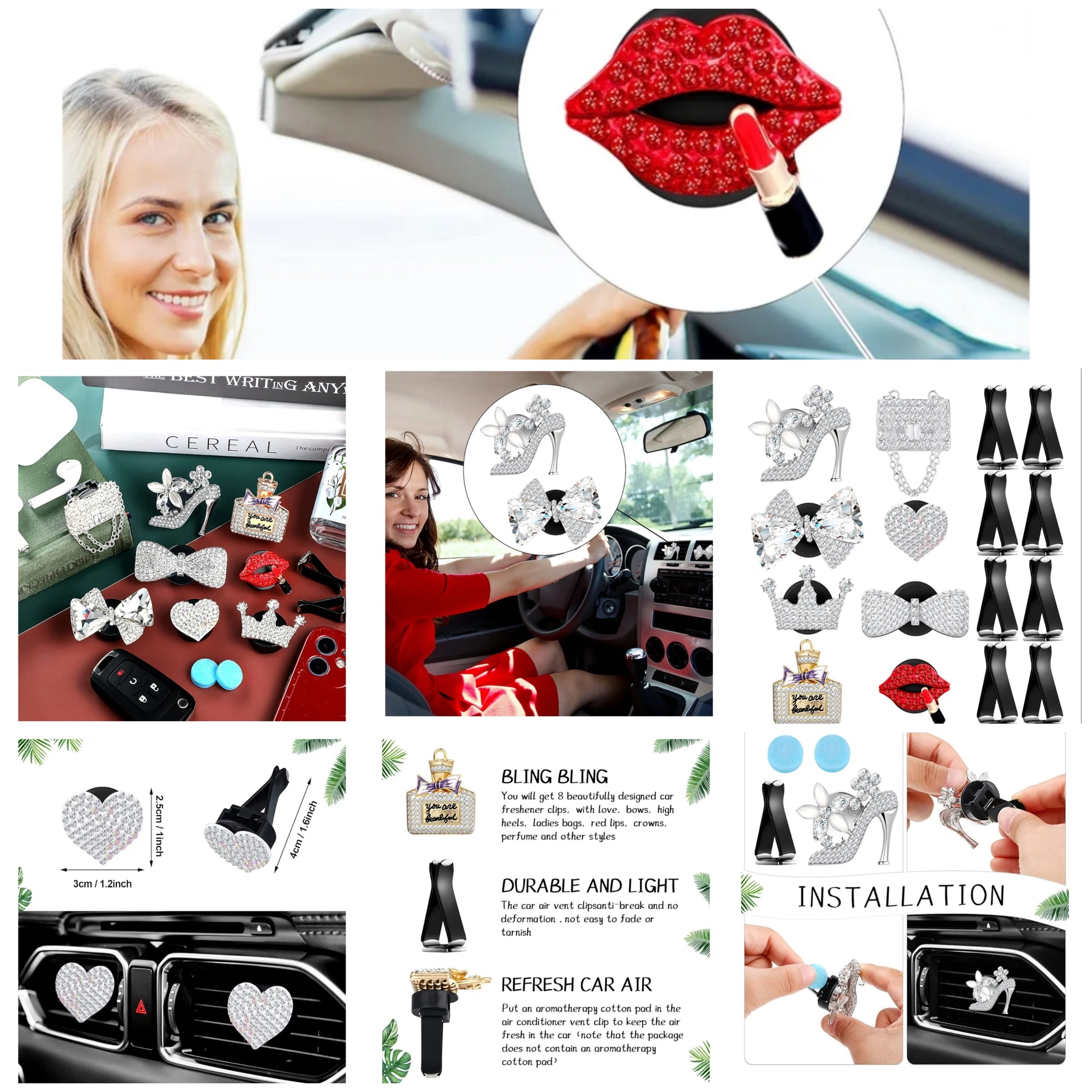 8 Pcs Bling Car Air Vent Clips Crystal Rhinestone Air Conditioning Outlet Clip Cute Diamond Interior Car Accessories for Women (Classic Style)