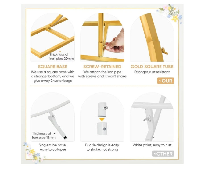8ft Balloon Arch Stand,Round Backdrop Stand,Golden Circle Wedding Arch Frame for Wedding,Valentine's Day,Birthday,Party,Friends Gathering,Christmas,Garden Decoration