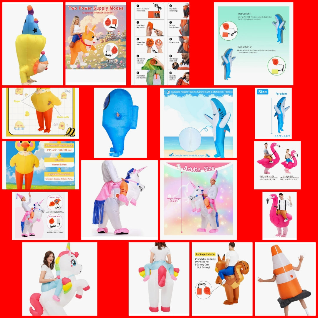 【Tips】 Please tighten the outer ring to hold the fan in place before putting on the costume, in case the ring becomes loose during shippment then the fan would fall out; If the costume can't be fully inflated, please loosen the ring and turn the fan towards the front to better inflate the head, also, tighten the drawstrings as tight as possible. Please do not put the run fan in your pocket for more than 2 hours to prevent burns to your skin.