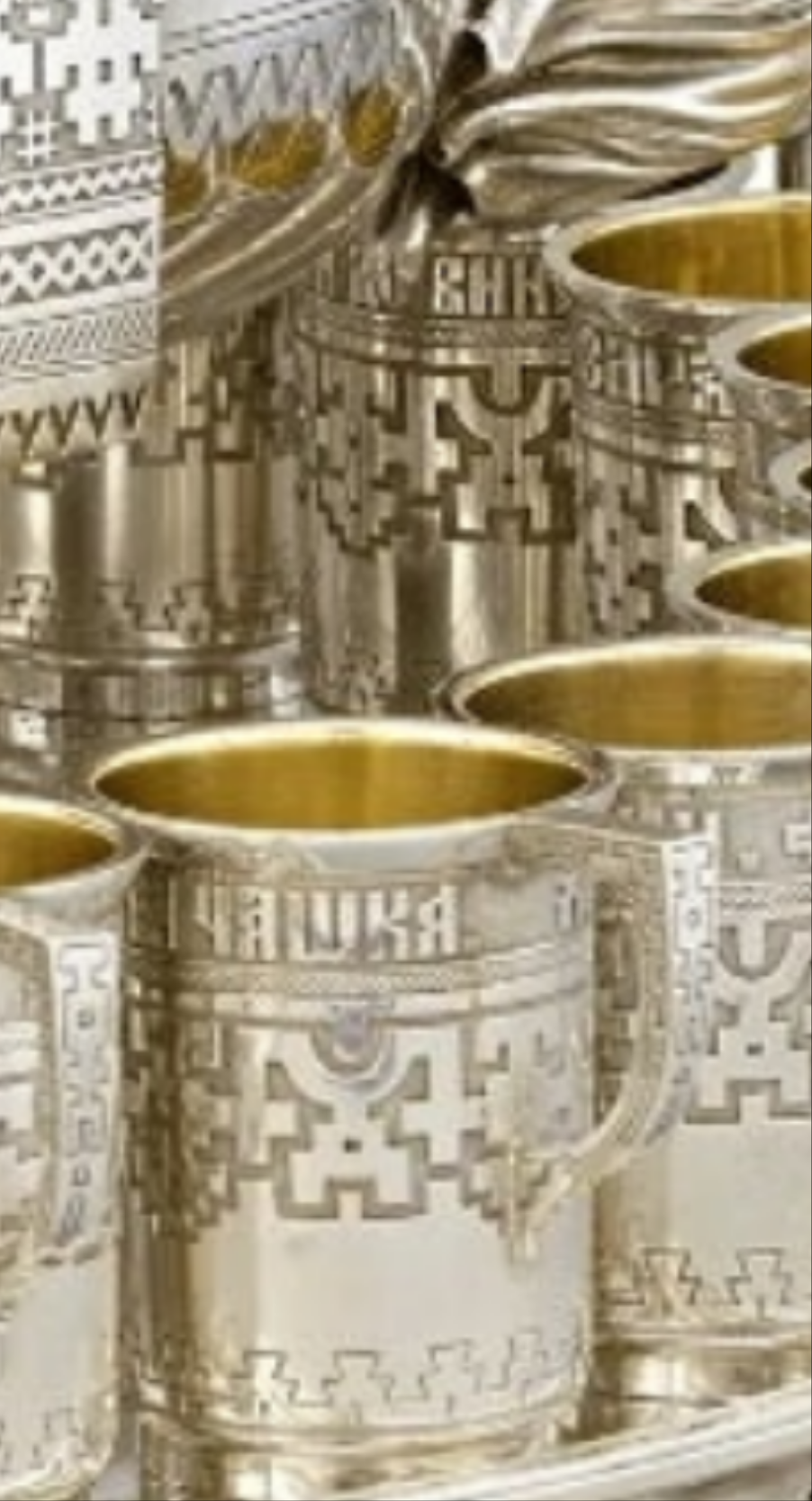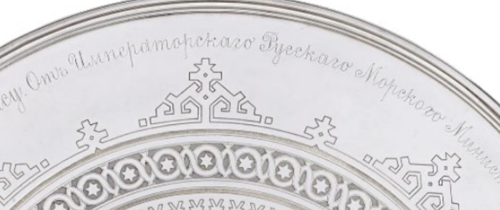 The service was commissioned by the Czar from the House of Sazikov, the oldest silversmith in Russia