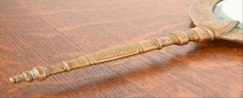 COCOMONEY.STORE....A rare and exceptional antique gilt bronze Alhambra beveled vanity hand mirror or decorative mirror