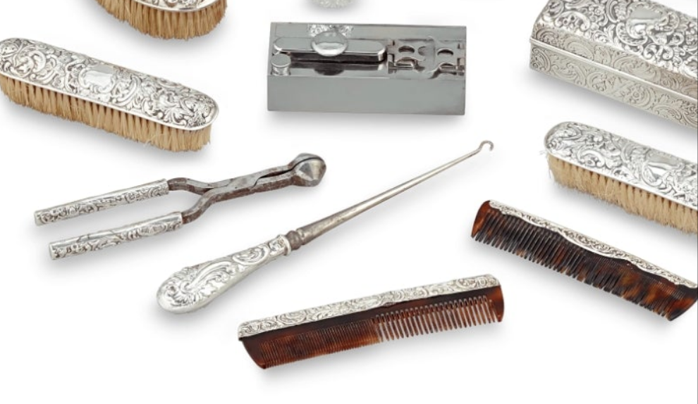 Each component of this set reflects the artistic sophistication and skill for which Comyns was celebrated. A heart-shaped box with a velvet top further enhances the ensemble’s charm, highlighting Comyns' expertise in creating refined silverware. This dressing set is not only a functional set but a work of art that exemplifies the aesthetic and decorative appeal that defined the Victorian era.