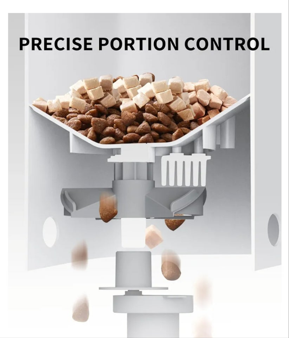 Two-way Audio and Meal Call: You are able to call your cat over and interact in real-time, delight in the experience of remotely interacting with your pets that most feeders don't offer. You can also record a personalized voice message within 20 seconds, it will be played automatically while dispensing food to remind your pets that it's mealtime. (Set up to 5 messages, if you want to set more than 5 messages, delete the old before the new messages done.)