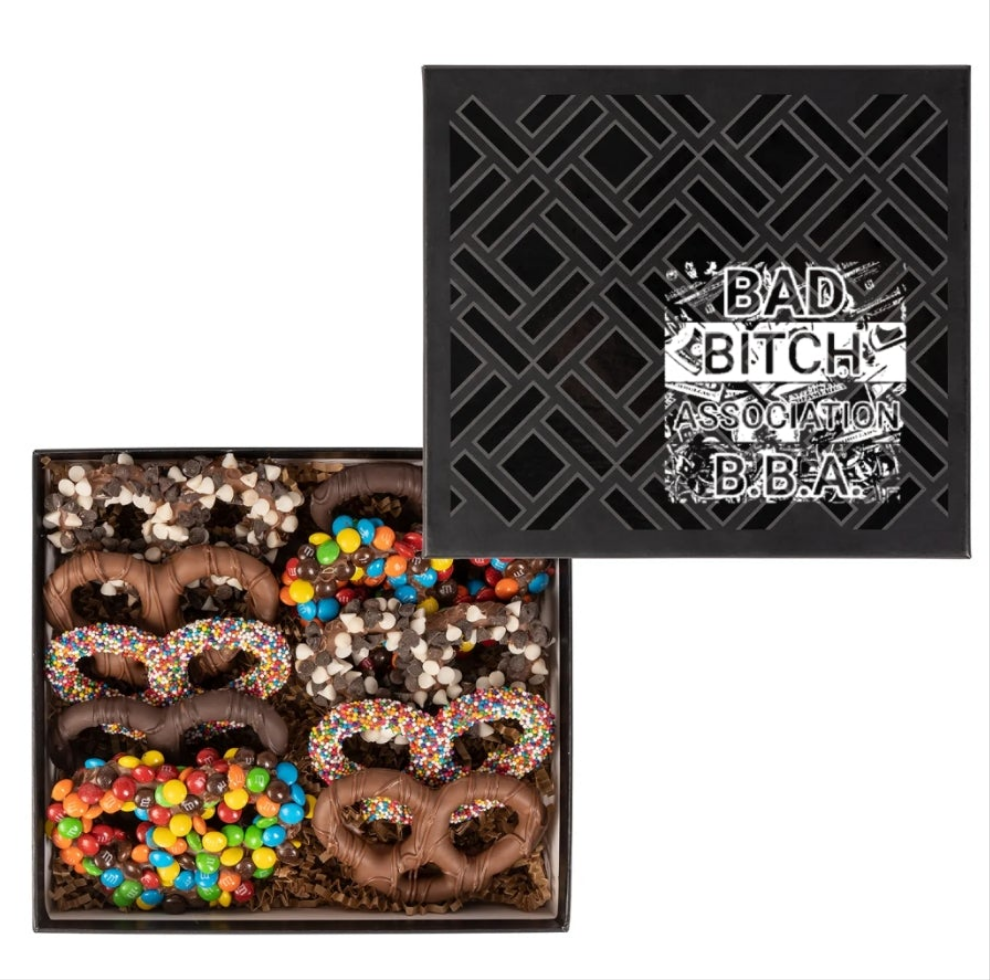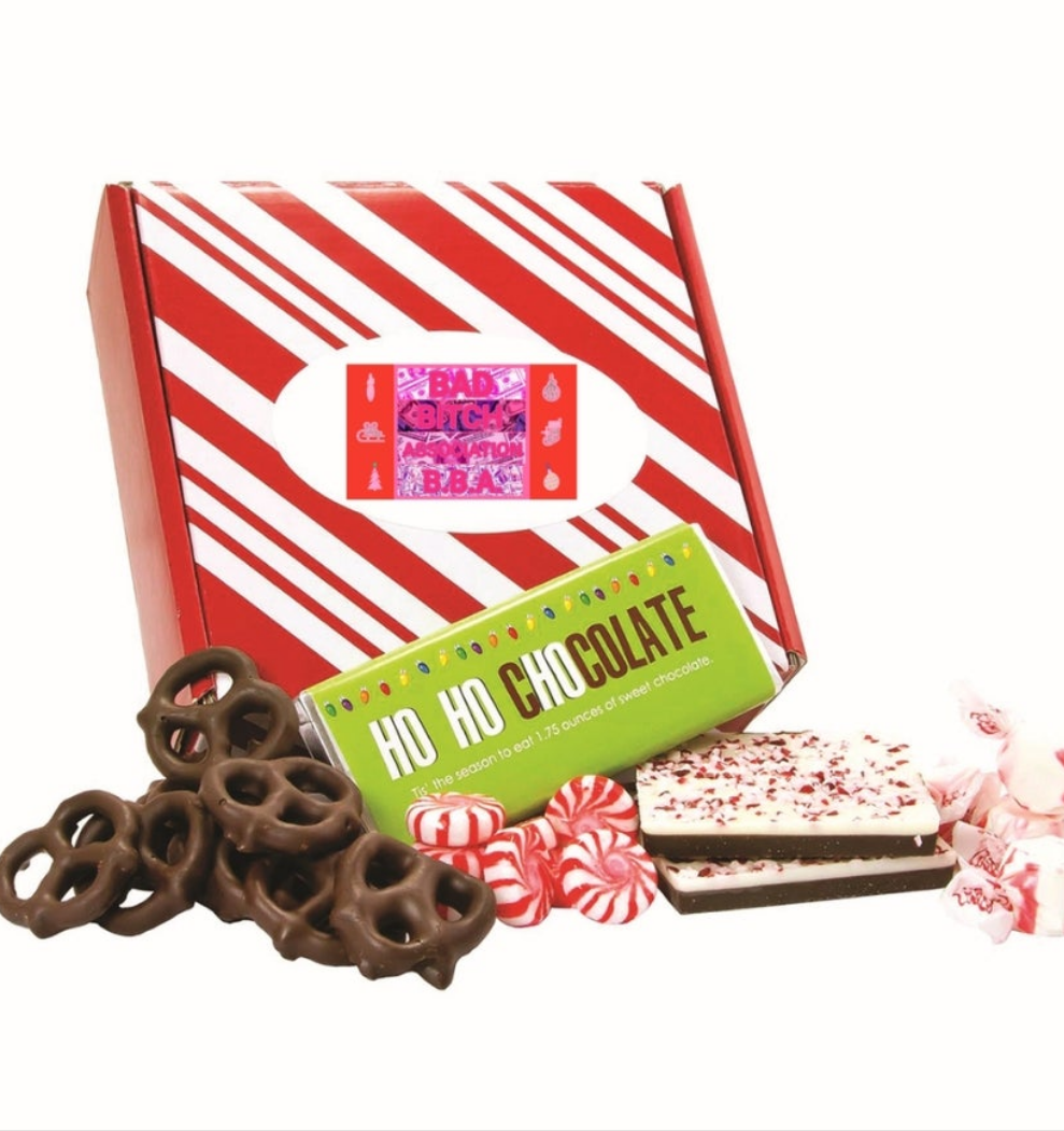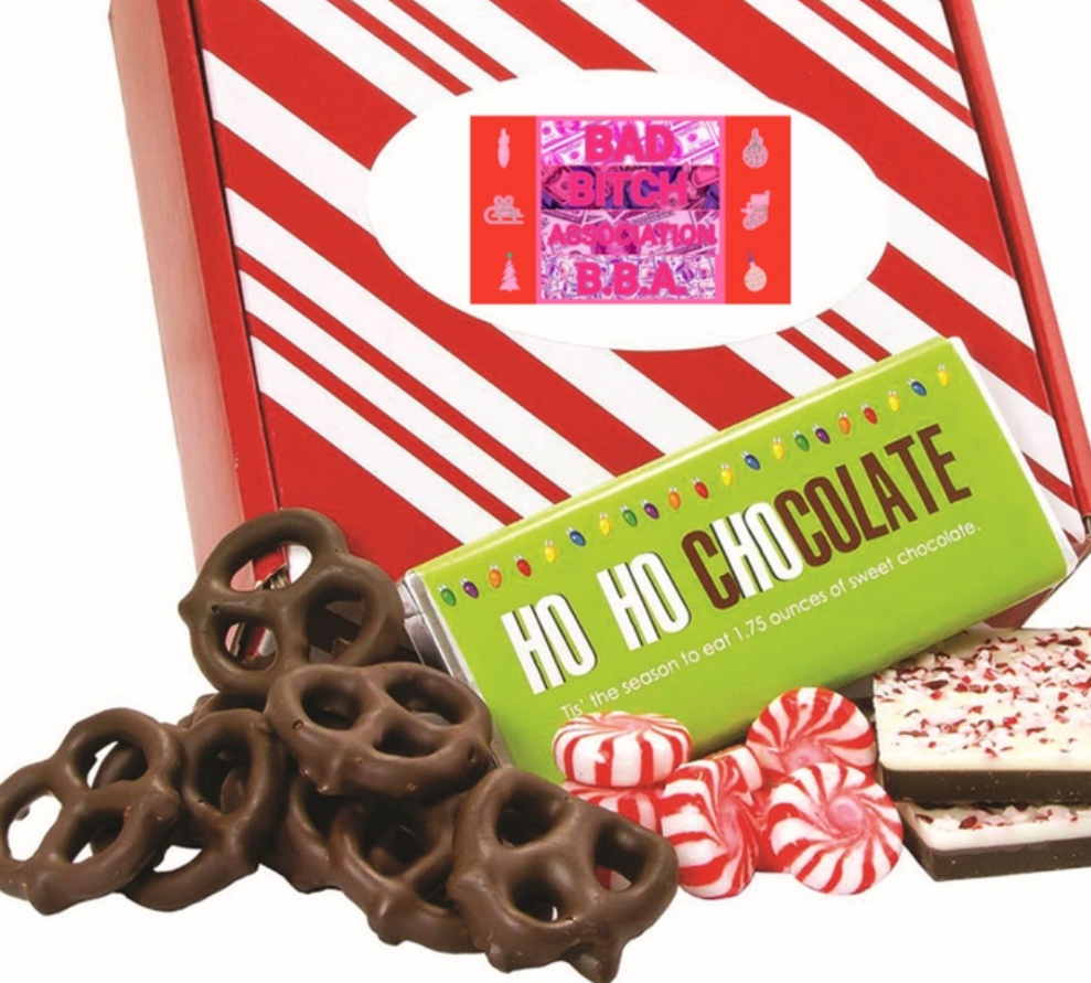 MILK CHOCOLATE BAR Ingredients: Milk Chocolate (Sugar, Cocoa Butter, Chocolate Liquor, Whole Milk Powder, Soy Lecithin [emulsifier], Vanilla Extract). Taffy Town β Peppermint Taffy β Natural Flavor Ingredients: Corn Syrup, Sugar, Coconut Oil, Sea Salt, Egg Whites, Evaporated Milk (Milk, Dipotassium Phosphate, Carrageenan, and Vitamin D3), Titanium Dioxide, Sunflower Lecithin, Natural Flavor, Artificial Color (Red 40). Peppermint Bark- Natural Peppermint Flavor Ingredients: Dark Chocolate-flavored Coating (Sugar, Hydrogenated Palm Kernel Oil, Cocoa Powder [processed with alkali], Soy Lecithin [emulsifier], Iodized Salt, Vanillin [artificial flavor]), White Confectionery Coating (Sugar, Vegetable Oil [Palm Kernel Oil and Hydrogenated Palm Kernel Oil], Whey Powder [Milk], Whole Milk Solids, Nonfat Dry Milk Solids, Soy Lecithin [an emulsifier], Salt, Artificial Flavor), Crushed Peppermint Candy (Sugar, Corn Syrup, Natural Peppermint Oil, Artificial Color [Red 40, Red 3, Blue 1]), Oil of Peppermint. Dark Chocolate Mini Pretzels Ingredients: Dark Chocolate (Sugar, Chocolate Liquor Processed with Alkali, Cocoa Butter, Soy Lecithin [Emulsifier], Vanilla Extract), Pretzels (Unbleached Enriched Wheat Flour [Flour, Niacin, Reduced Iron, Thiamine Mononitrate {Vitamin B1}, Riboflavin {Vitamin B2}, Folic Acid], Malt, Salt, Soybean Oil), Milk. Contains: Wheat, Soy, Milk May Contain: Peanuts, Tree Nuts, Eggs Starlight Mints β Peppermint Hard Candy β Artificial Flavor Ingredients: Sugar, Corn Syrup, Titanium Dioxide, Artificial Flavor, Red 40. DRESS zipper lined top bottom not lined polyester Elastane medium stretch machine wash don't dry clean pencil hem shaped.