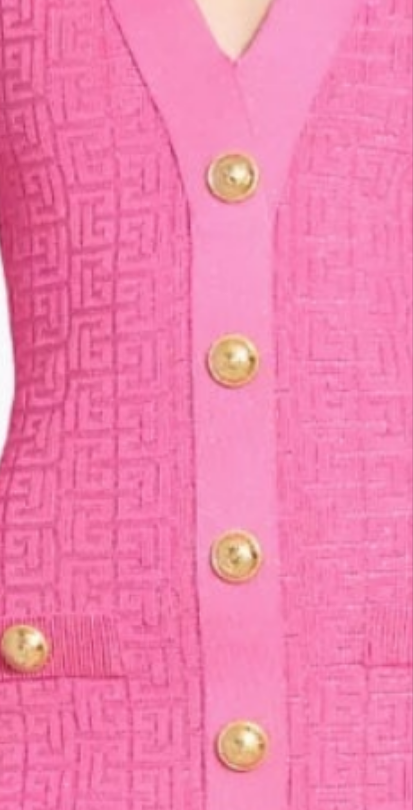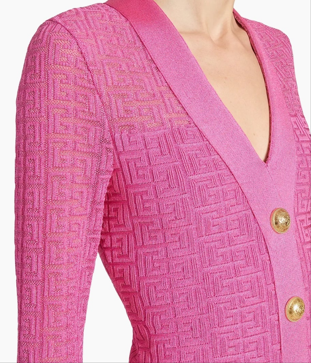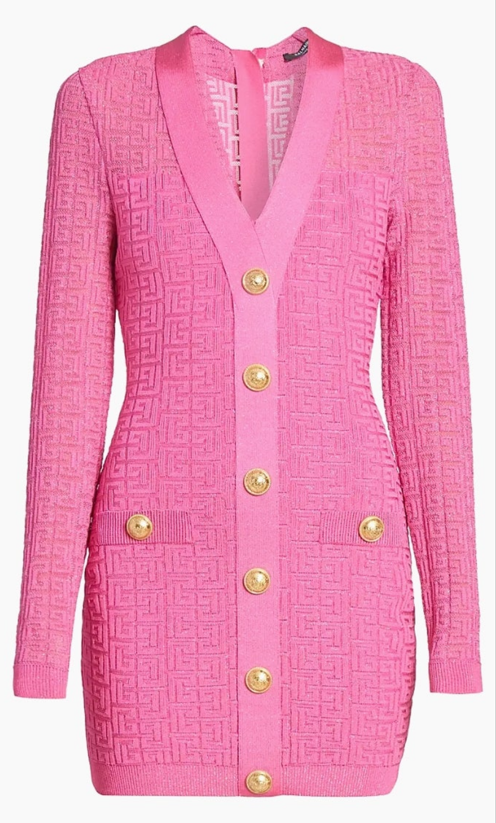 COCOMONEY.STORE,,, AUTHENTIC VERIFIED INSPECED GUARANTEED ,,This Balmain minidress is cut for a bodycon silhouette with a V-neck and long sleeves. Goldtone button detailing and the brand's logo knit complete this piece.