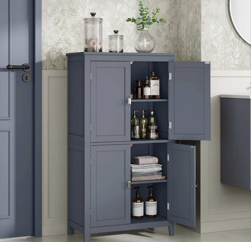 Bathroom Floor Storage Cabinet, Bathroom Storage Unit, Freestanding Cabinet With 4 Doors