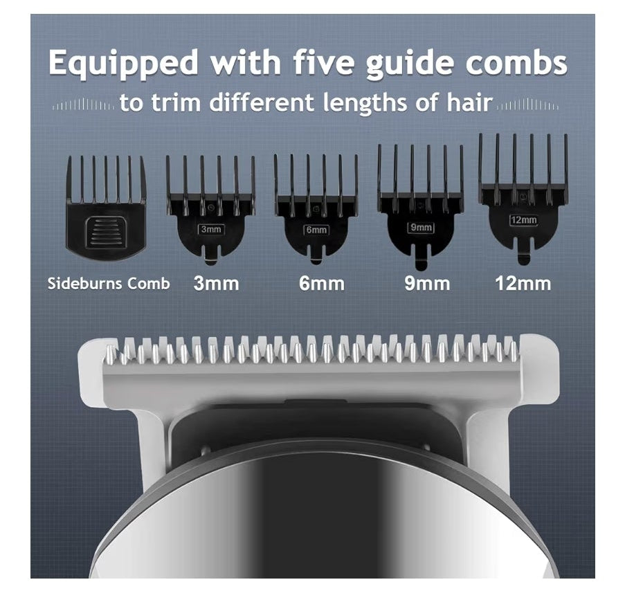 Multi-Functional Grooming Kit for All Your Manscape Needs - Our precision shaving system includes 6 trimmer heads for a versatile grooming experience. Whether you need to trim your face, beard, mustache, nose hair, groin, pubic hair, ball or other private parts, this trimmer kit has you covered. With 5 guide combs (3, 6, 9, 12mm) and adjustable sideburn combs, you'll have plenty of cutting options to choose from. Our barber supplies are suitable for both men and women
