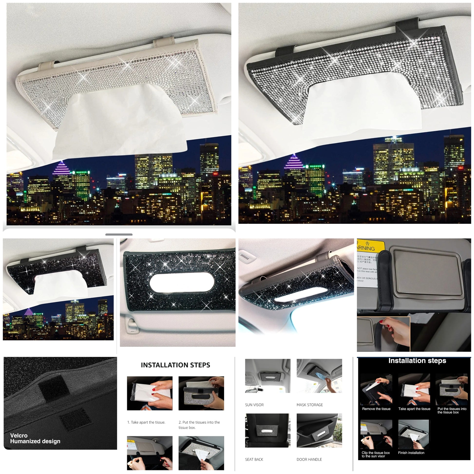 Bling Bling Car Visor Tissue Holder Leather Crystals Paper Towel Cover Case