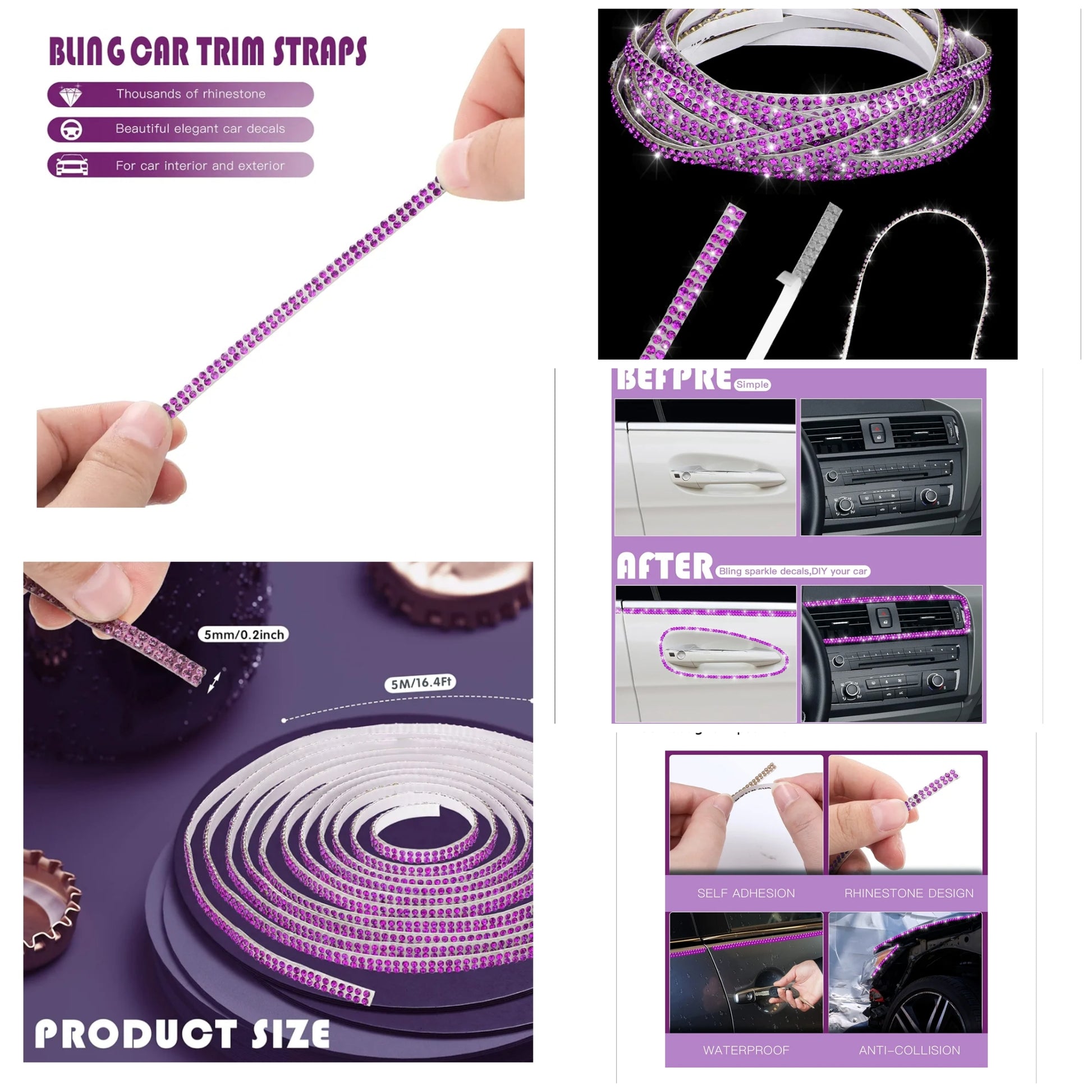 Bling Car Trim Self Adhesive Bling Car Interior Exterior Decorations for Women Rhinestone Decor Stickers(16.4 ft,